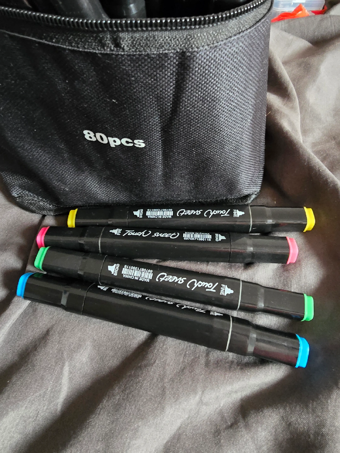 Selling a set of Touch Sweet art markers! This set comes with 80 pieces and a carrying case to keep them organized. Great for artists of all levels, these markers offer a wide range of colors to bring your creations to life