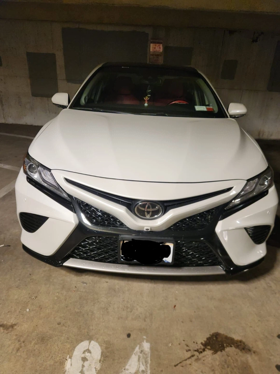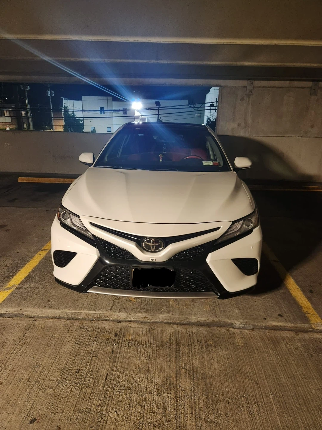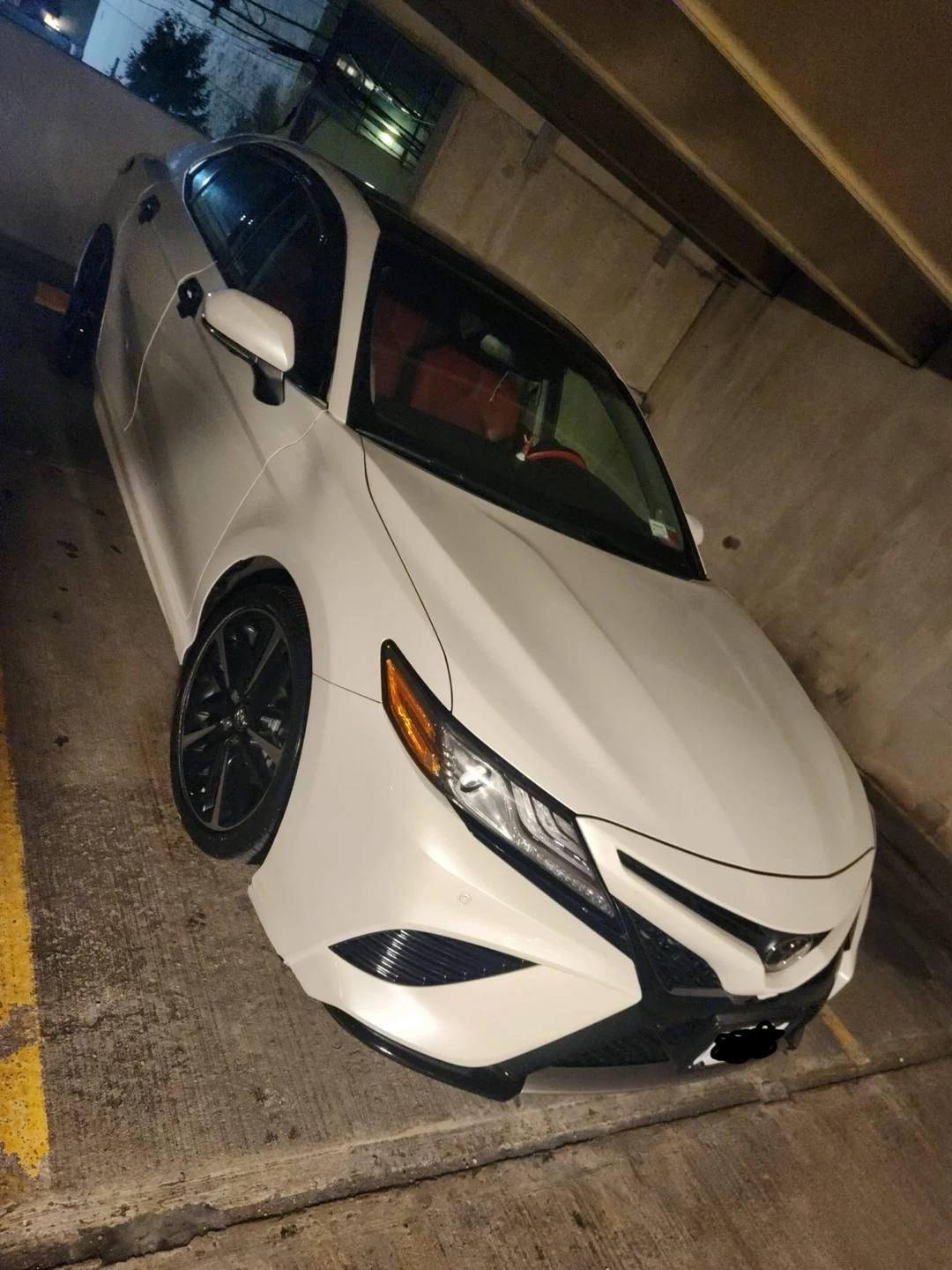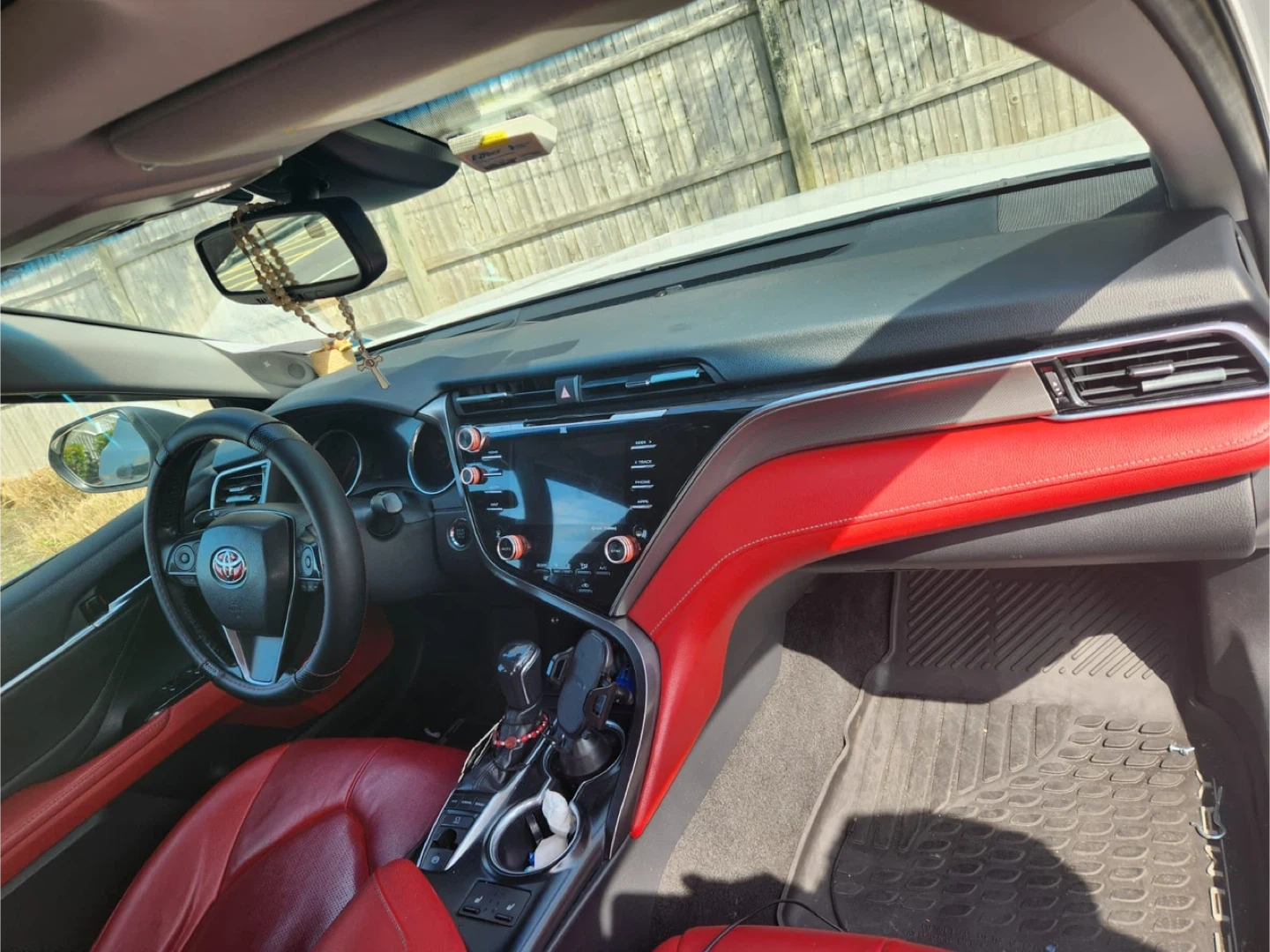 Selling a white Toyota Camry sedan. It's in good condition and ready for a new owner. The interior features a striking red color that adds a touch of style to your ride