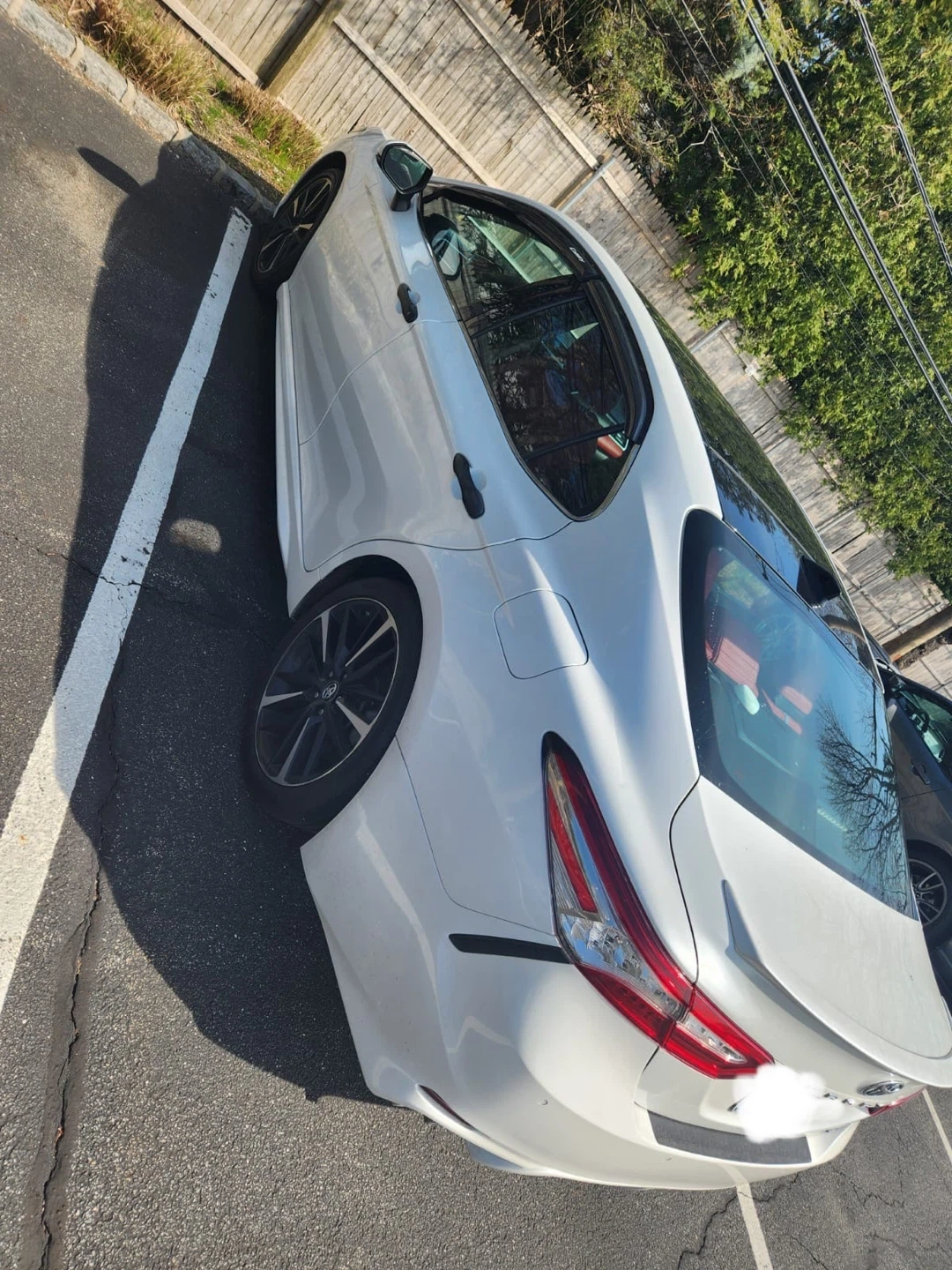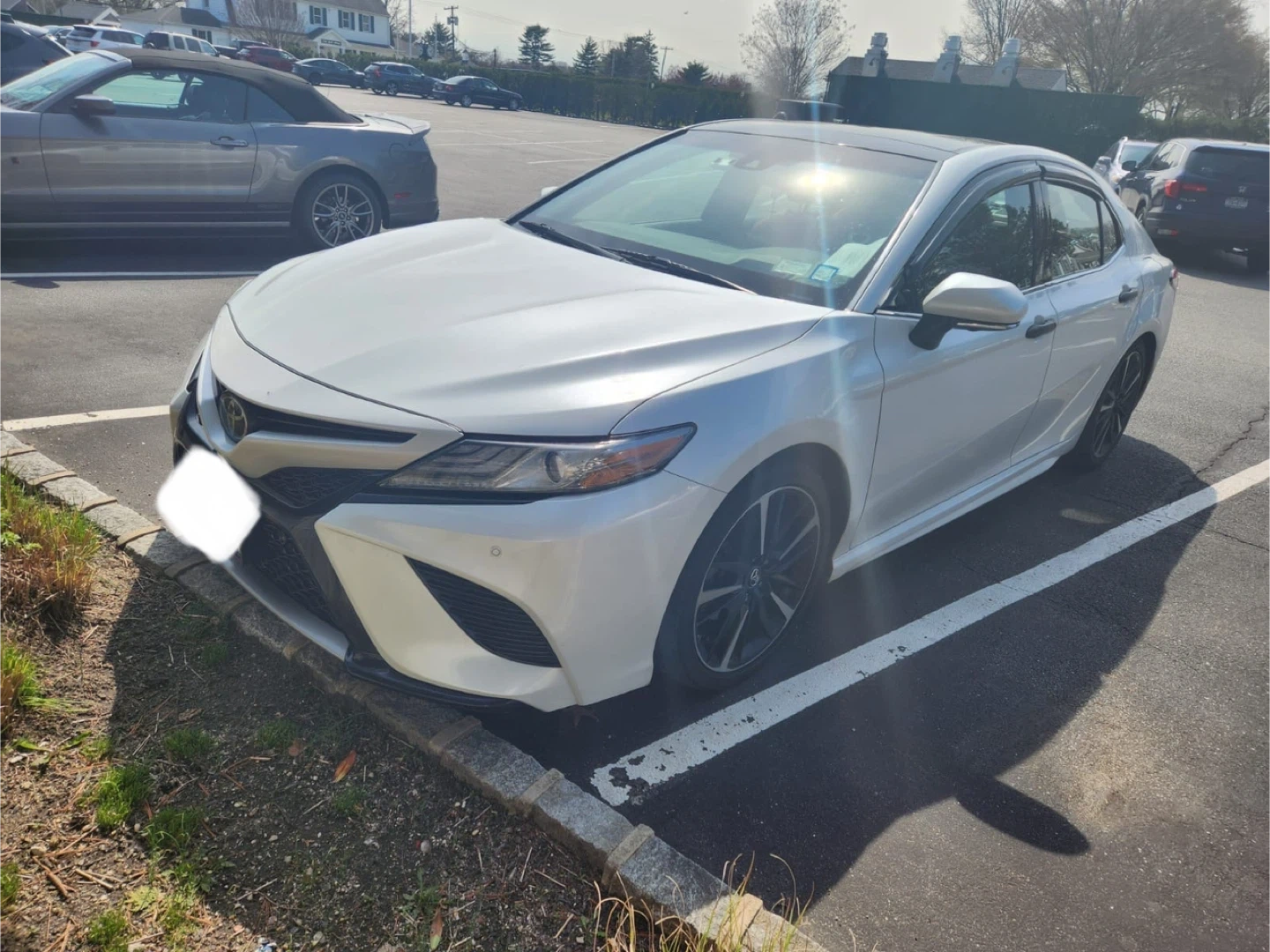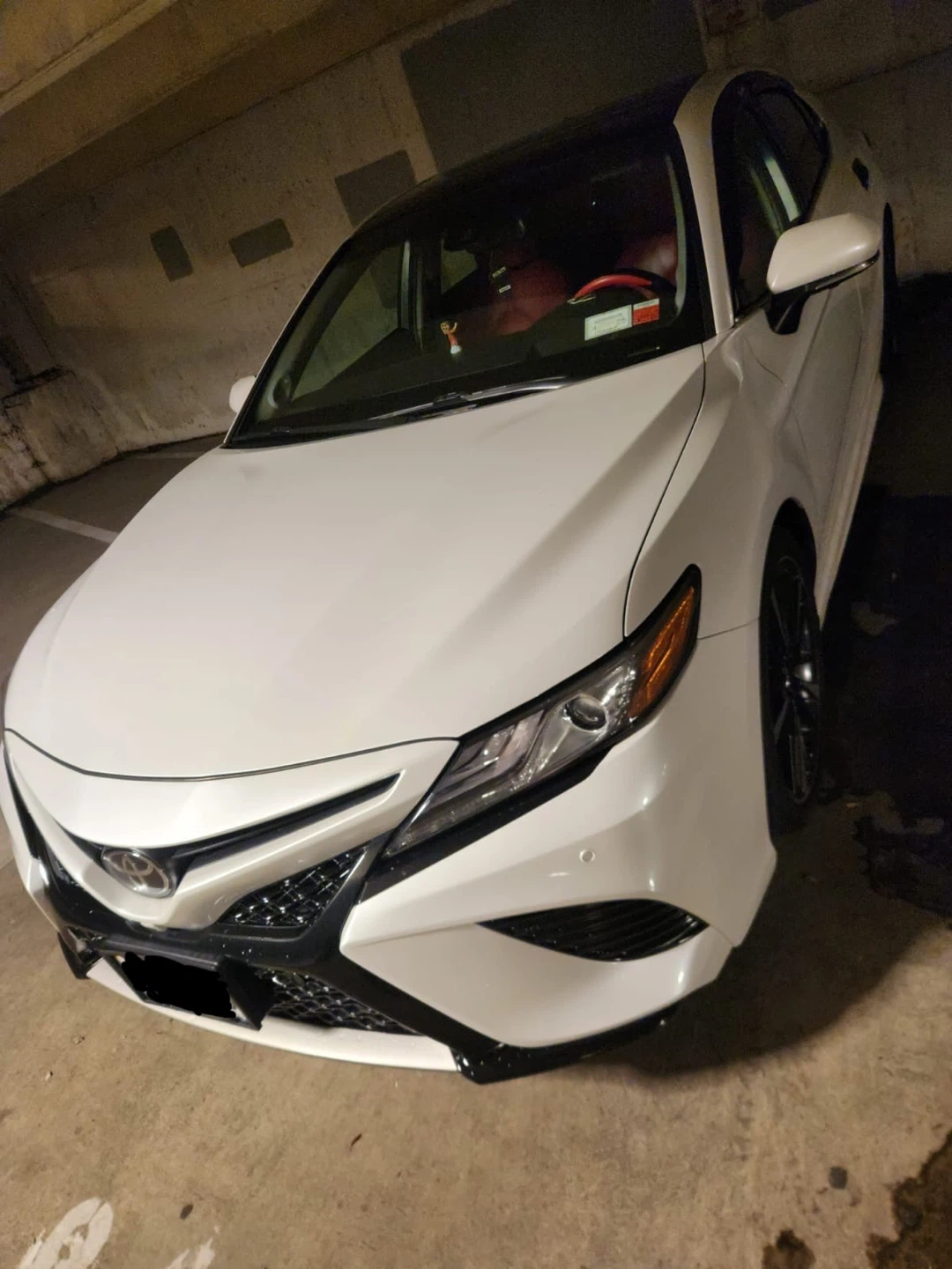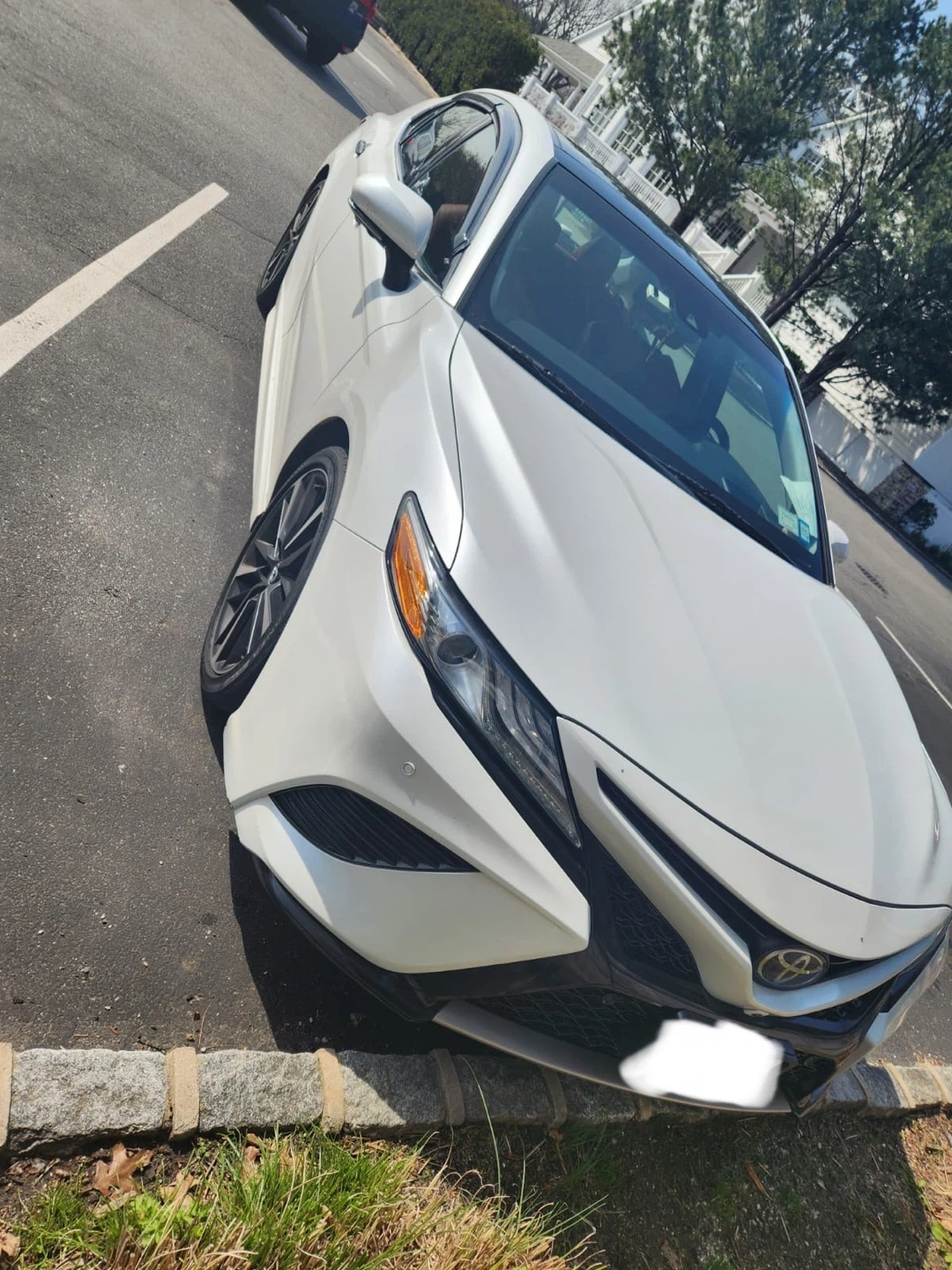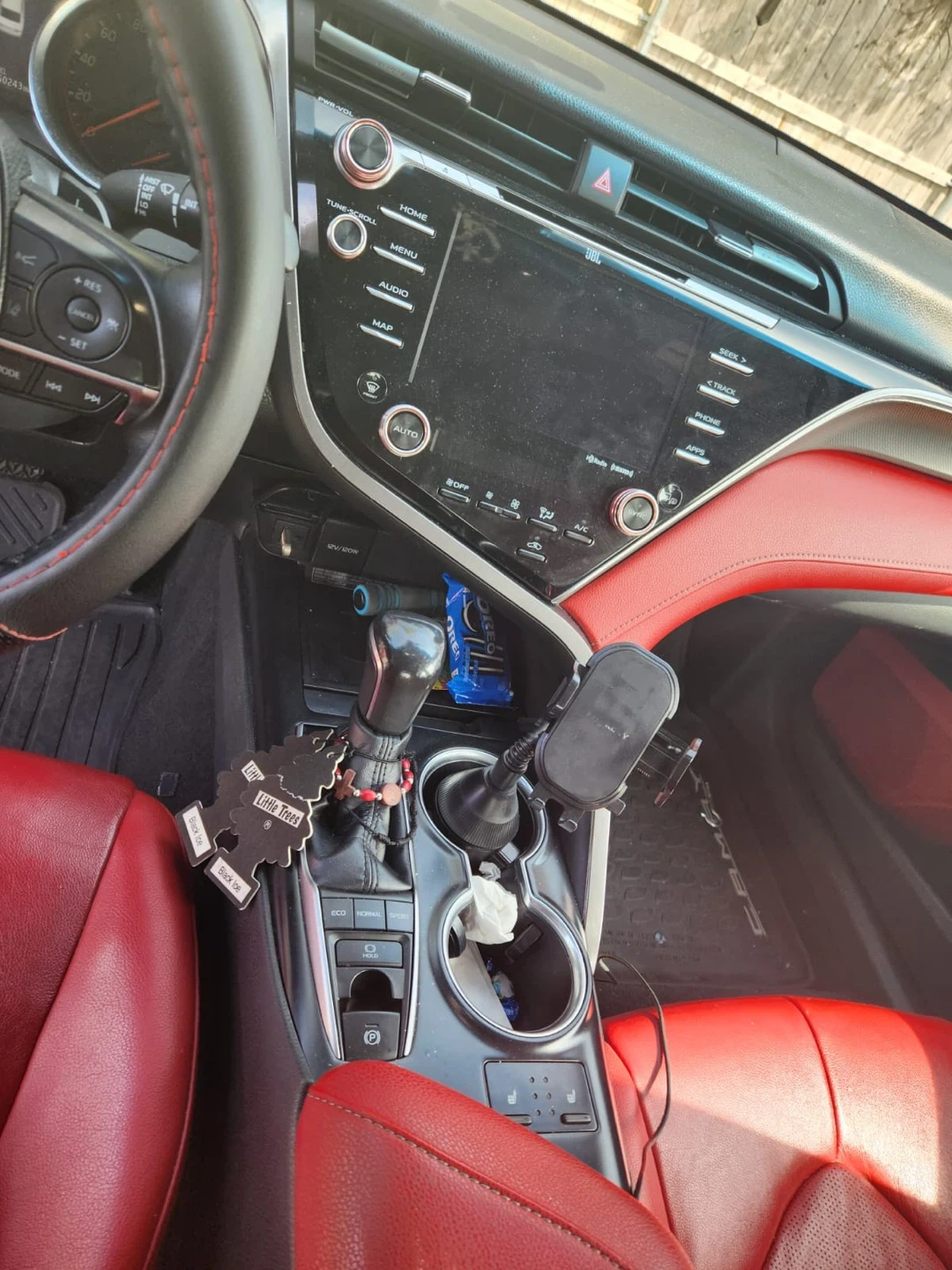 Selling a white Toyota Camry sedan. It's in good condition and ready for a new owner. The interior features a striking red color that adds a touch of style to your ride