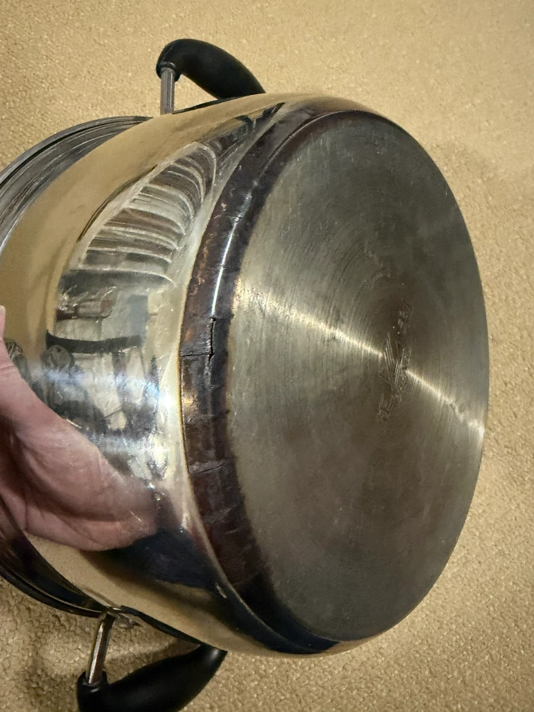 4.5 quart cooking pot. Part of the steel on the edges of one side is starting to peel. Other than that, no problems. Works fine.