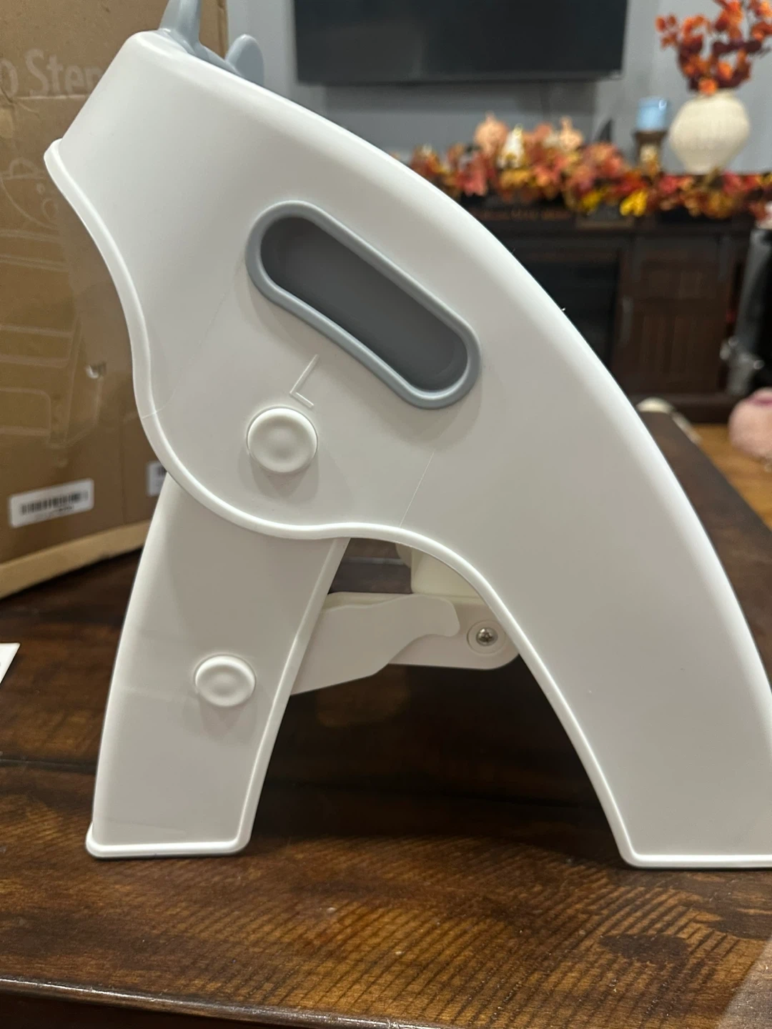 Selling a TPN toddler two-step stool in gray! It's in great condition and comes with the original box. Perfect for helping your little one reach new heights safely and easily