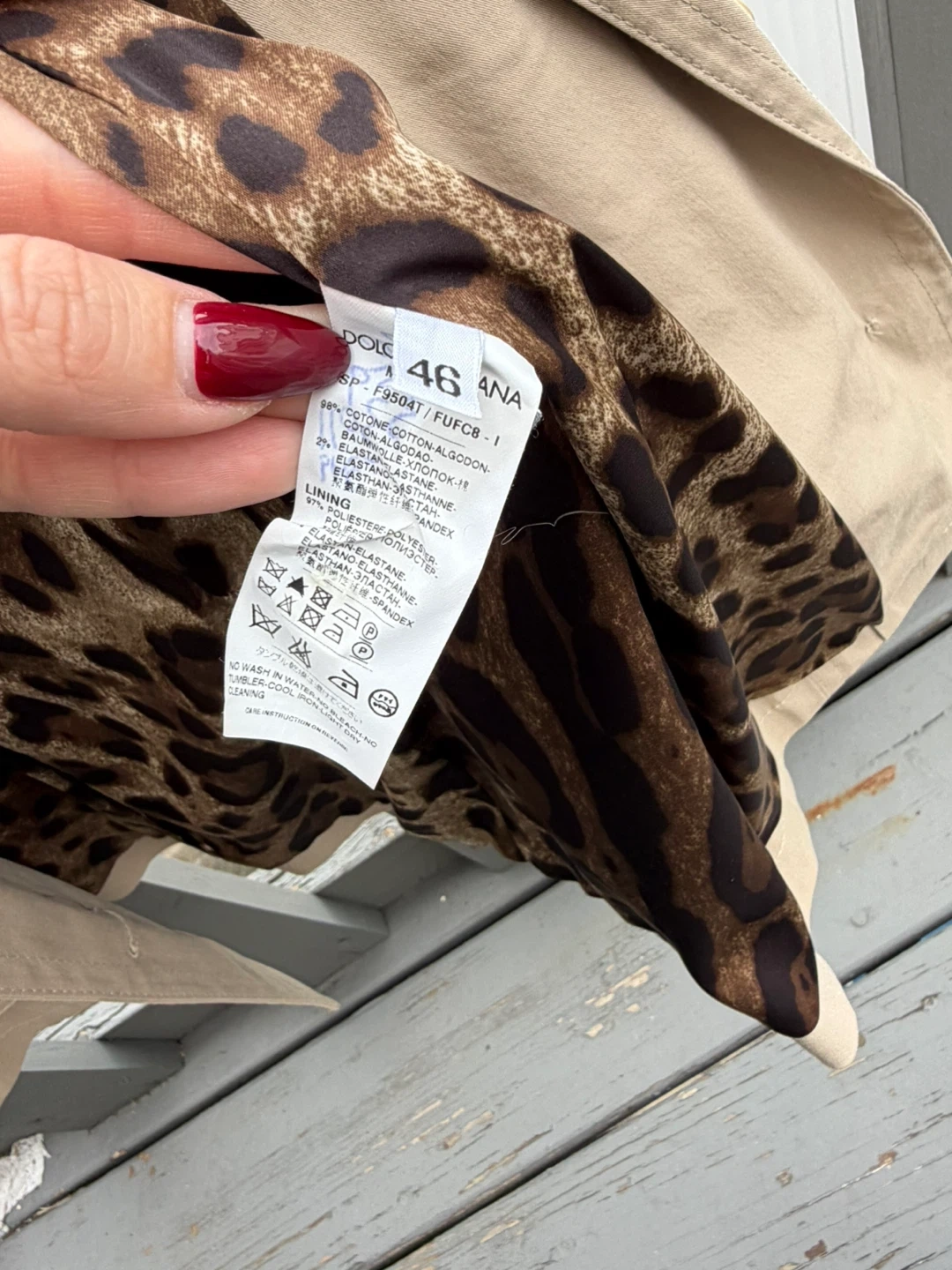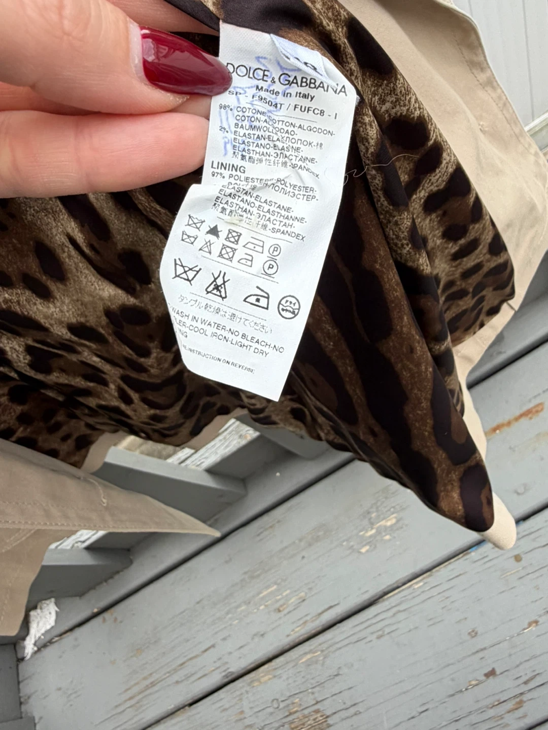 Dolce & Gabbana Tan Trench Coat with Leopard Print Lining