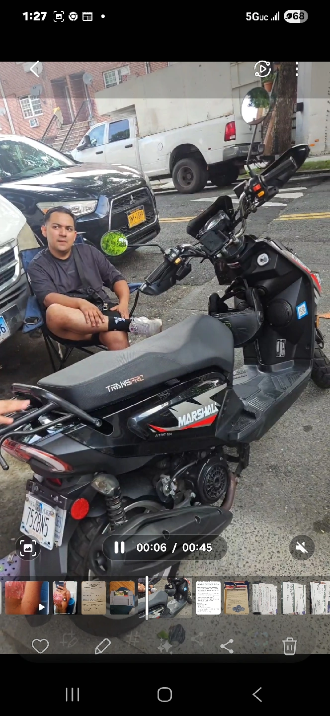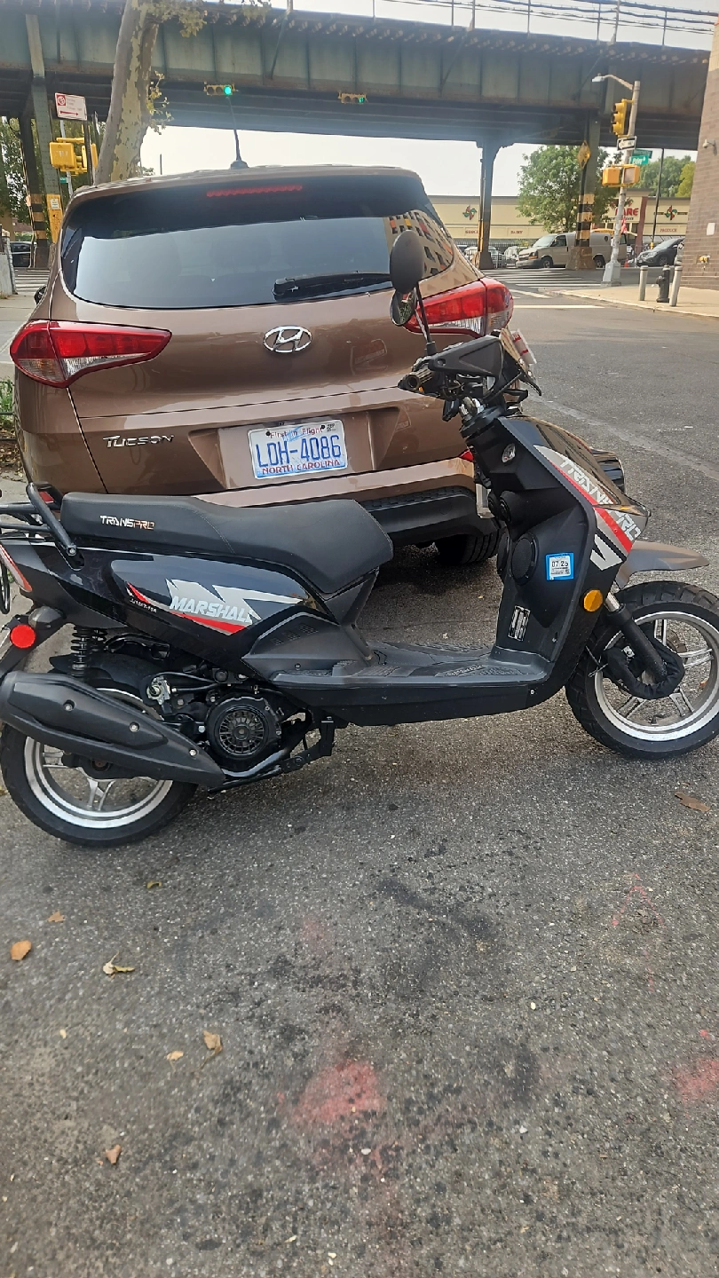 Selling a Transpro Marshall scooter. It is black with red and white accents. Great for getting around town! this is alarm start key switch out side speakers 2 seat good for delivery not a 50 cc this is 2 people and can highway used this bigger then a 50 cc coust up to 1200 new and tax to buy and ride start up no pushing home engine and sound quiet like New mo ey maker less then a 2 week your money back for jobs