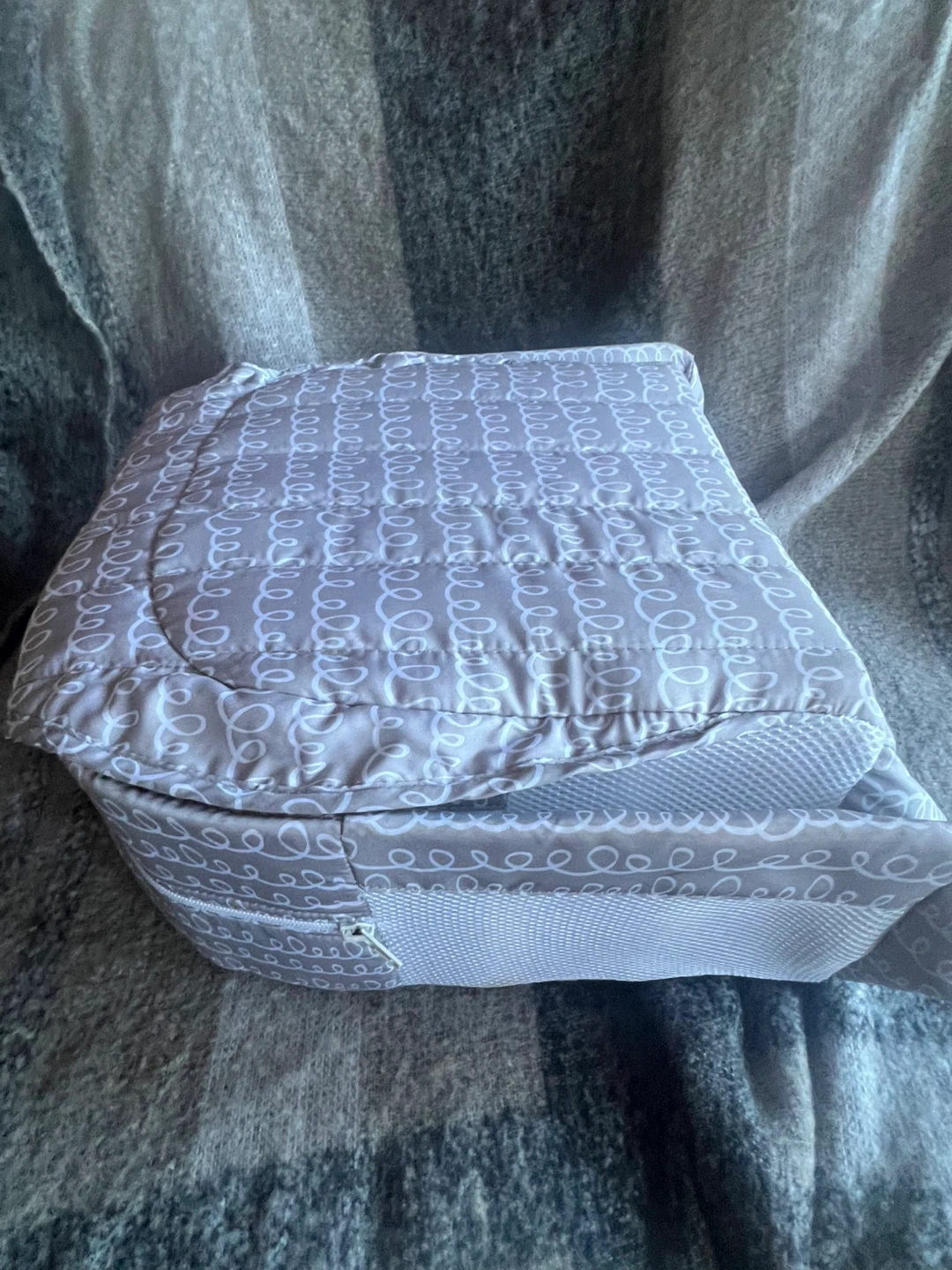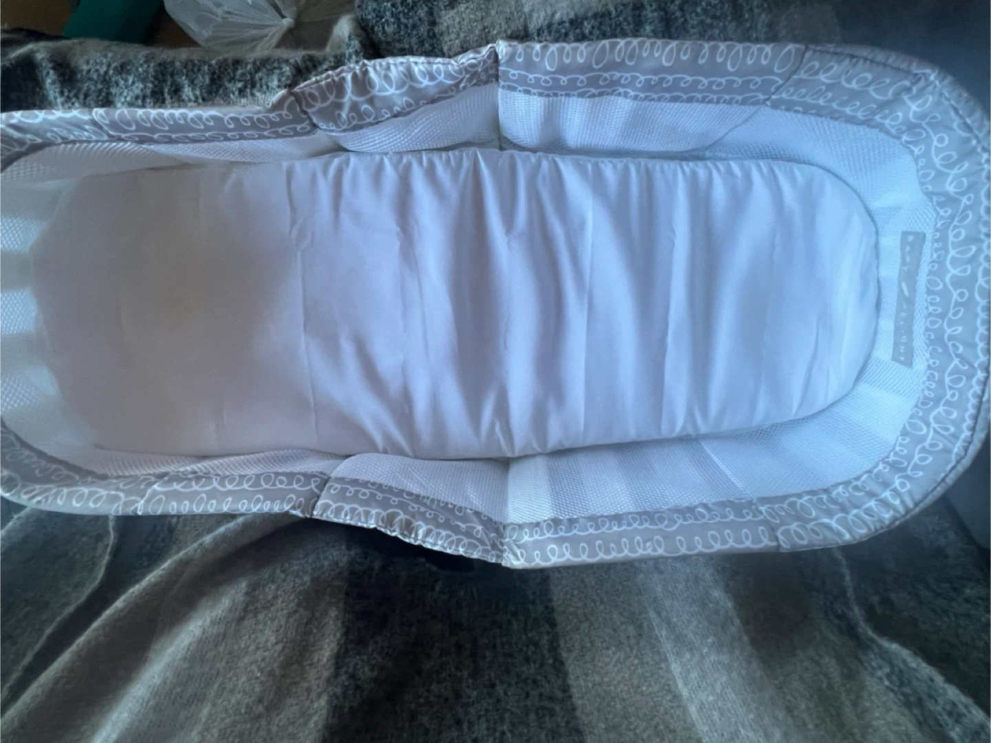 75Travel bassinet On-The-Go Baby Dome in a neutral gray and white color scheme! It's in great condition and perfect for travel or keeping baby comfy at home. The travel bassinet folds easily for storage and has a convenient carry handle. It provides a cozy, protected space for your little one wherever you go