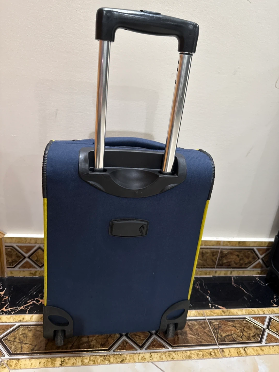 Selling a blue Travel System carry-on suitcase! It's in good condition and ready for your next trip. Perfect size for fitting in the overhead bin, and the handle extends smoothly for easy maneuvering. It has a front pocket for easy access to your essentials