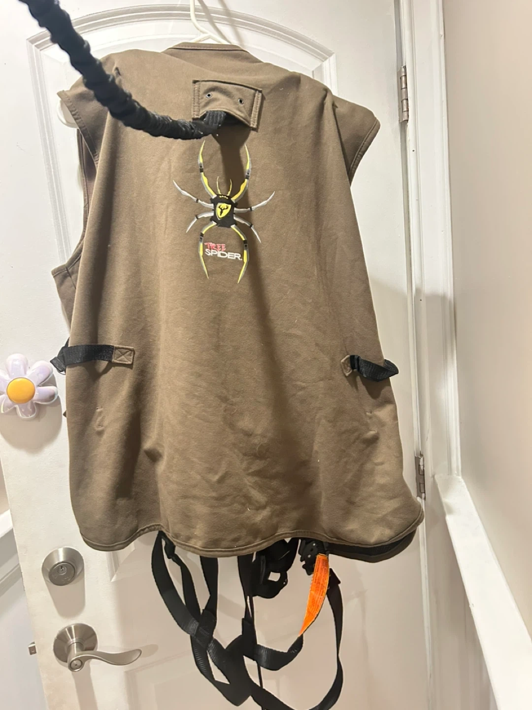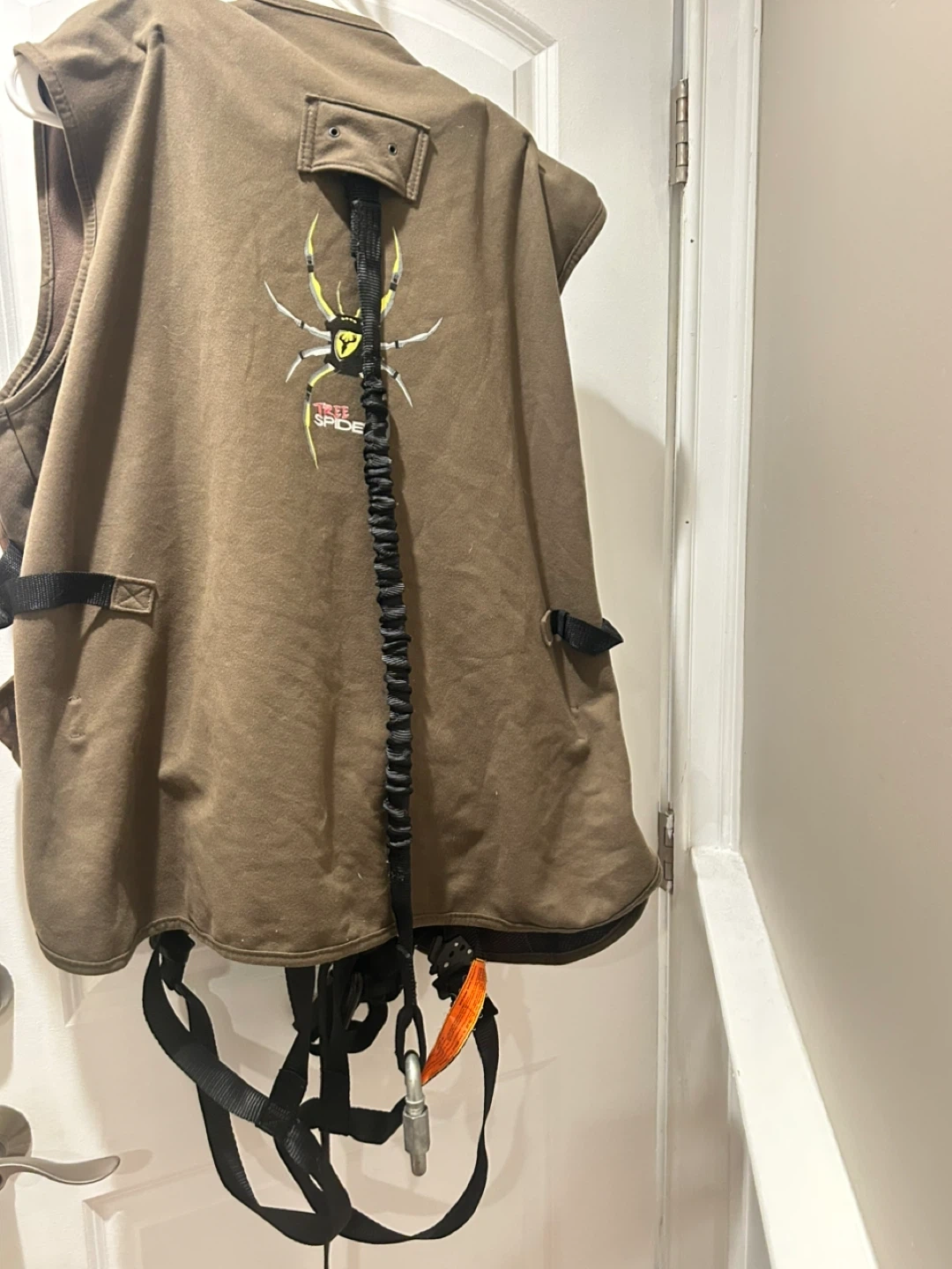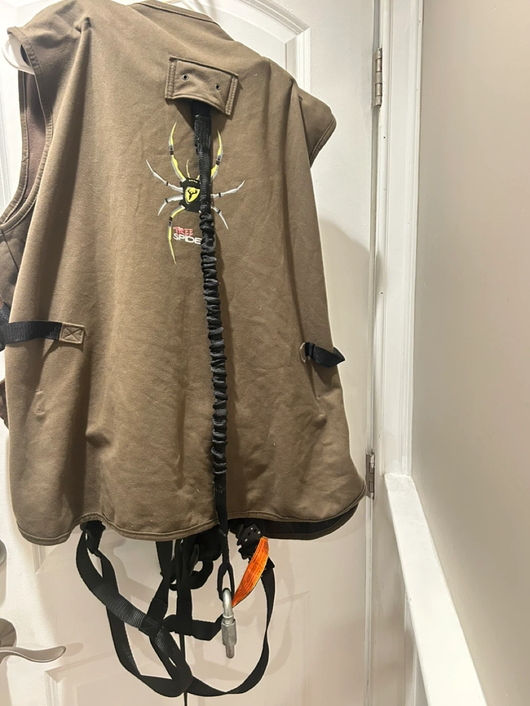 75Selling a Tree Spider hunting safety vest. It is in mint condition and ready for use. The vest is brown with the Tree Spider logo on the back. Perfect for staying safe while hunting!