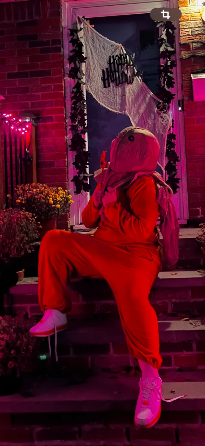 10Selling a Sam costume from the movie Trick 'r Treat! It includes the orange jumpsuit, burlap sack, mask, and a prop lollipop. Used once. One button is missing from the mask.
