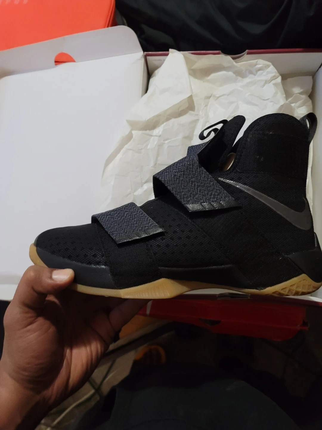Nike LeBron Soldier 10 SFG basketball shoes. Men's size 12. Includes original box. Black and gum sole colorway.