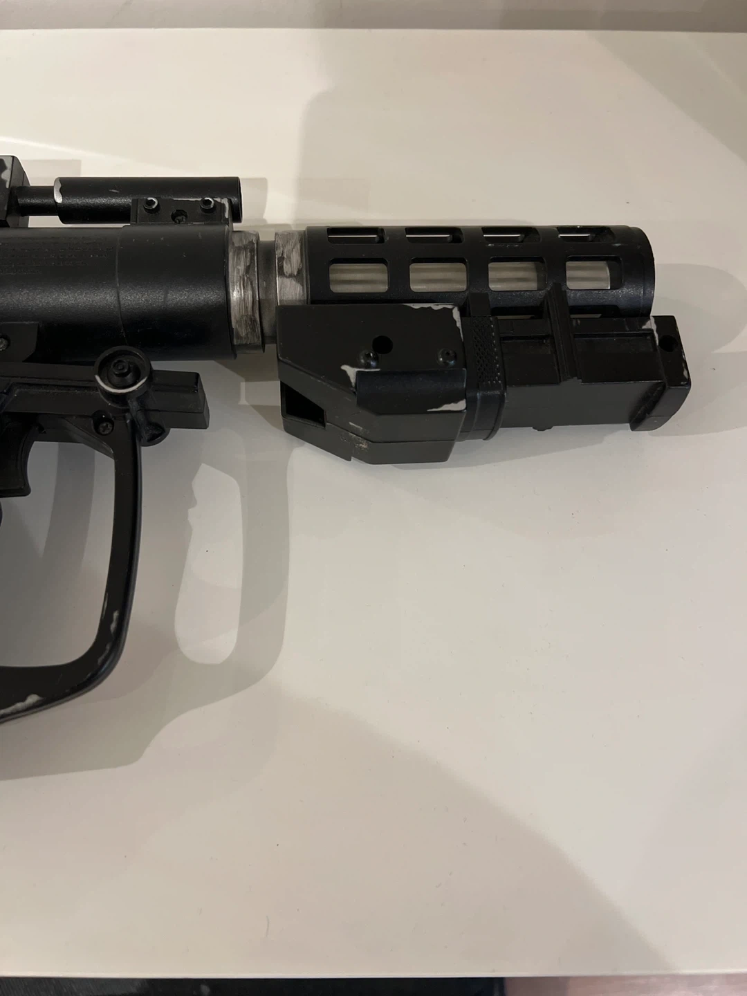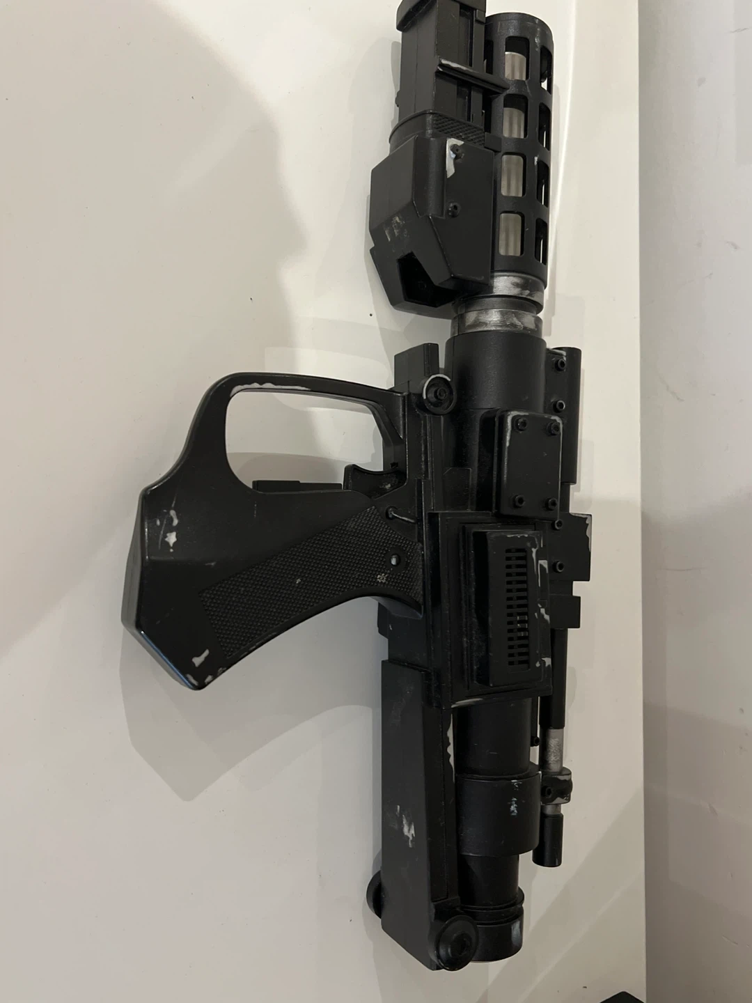 Selling a Star Wars E-11 Blaster toy. It has some wear and tear but is still in good condition for display or cosplay