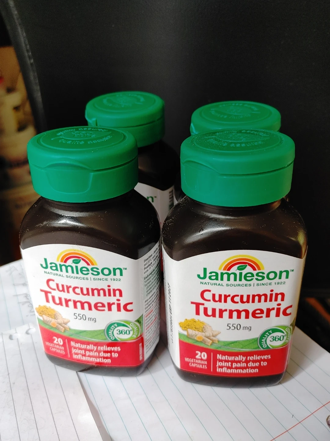 Jamieson Curcumin Turmeric supplements, 550 mg per capsule. Contains 20 vegetarian capsules per bottle. Naturally relieves joint pain due to inflammation. EXP 2027.