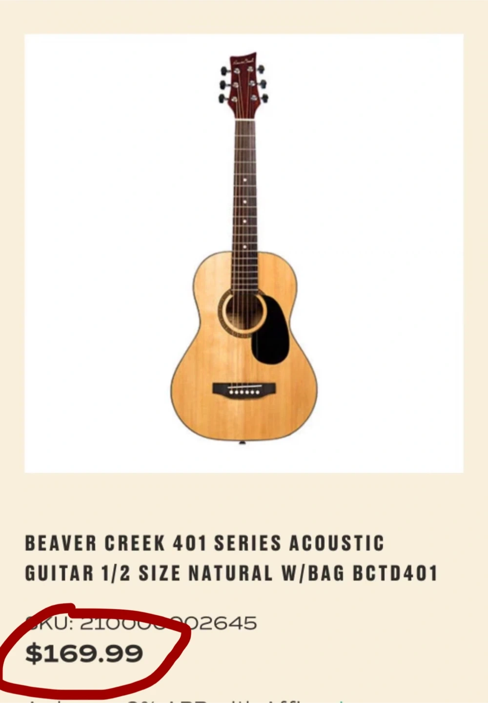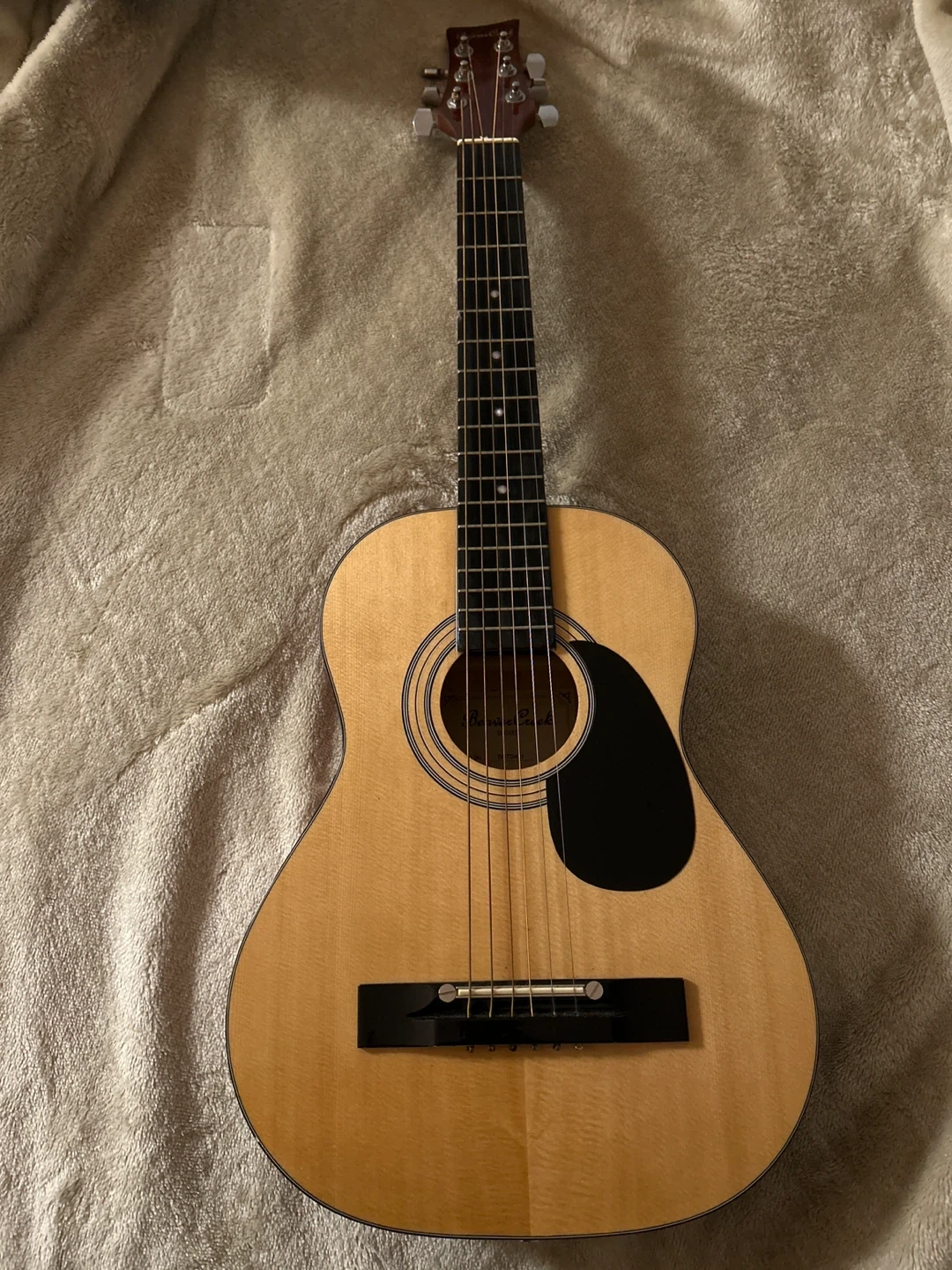 This is a 1/2 size nylon string guitar from Beaver Creek. It's a great starter instrument. The guitar is made with a natural wood finish.