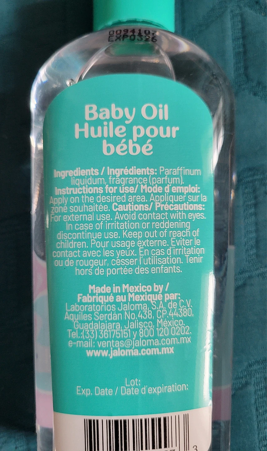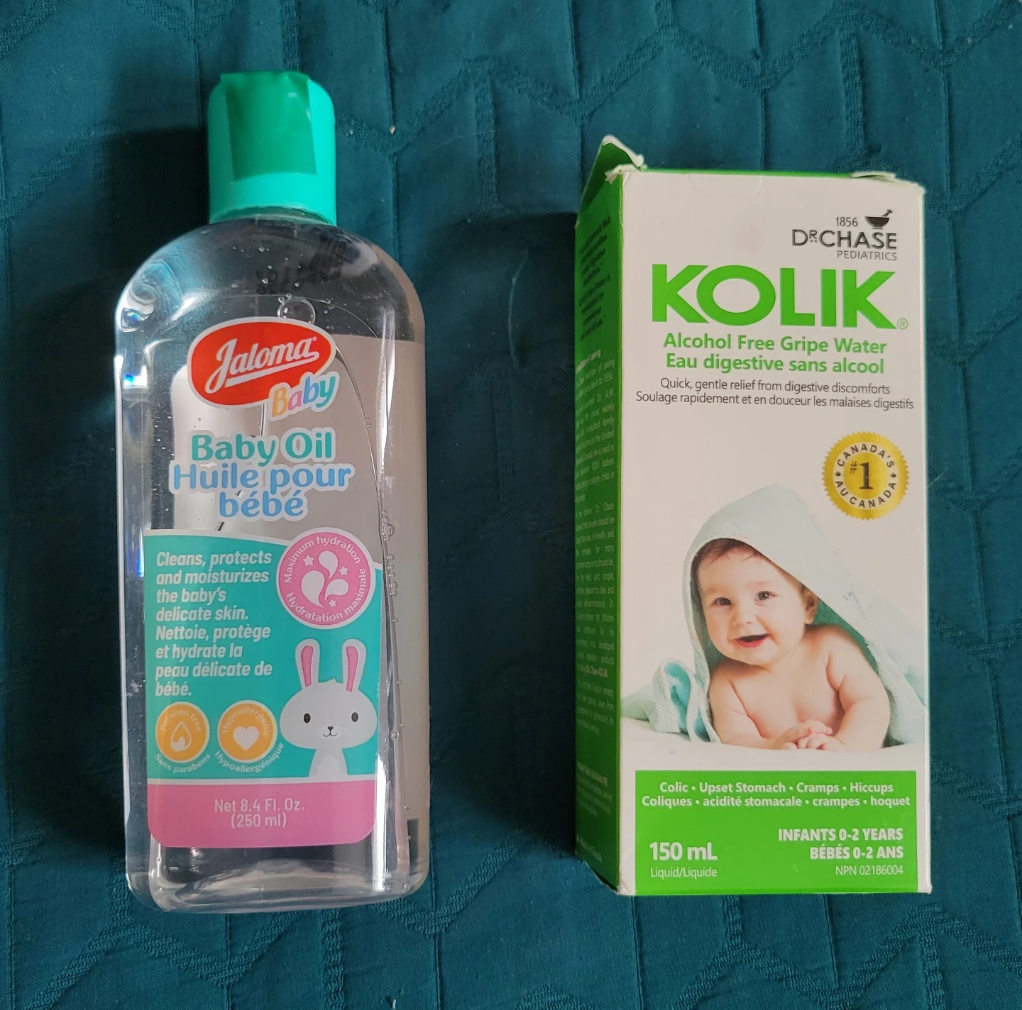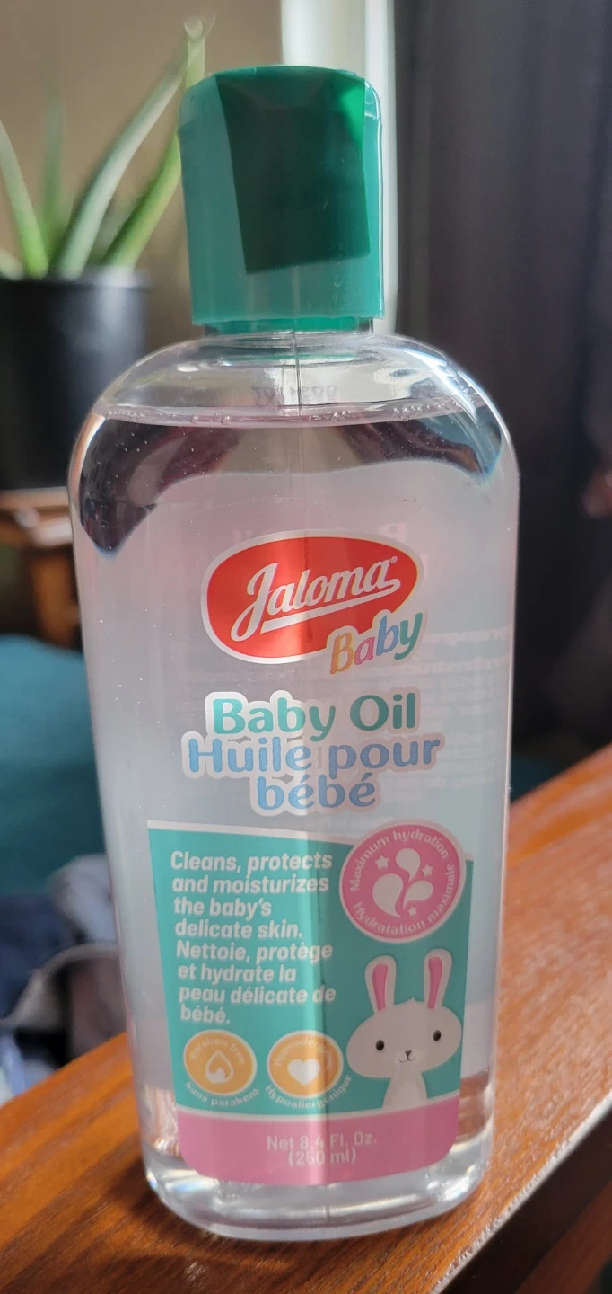 - 1 bottle of baby oil (New, just have tape on to make sure it didn't open and leak)