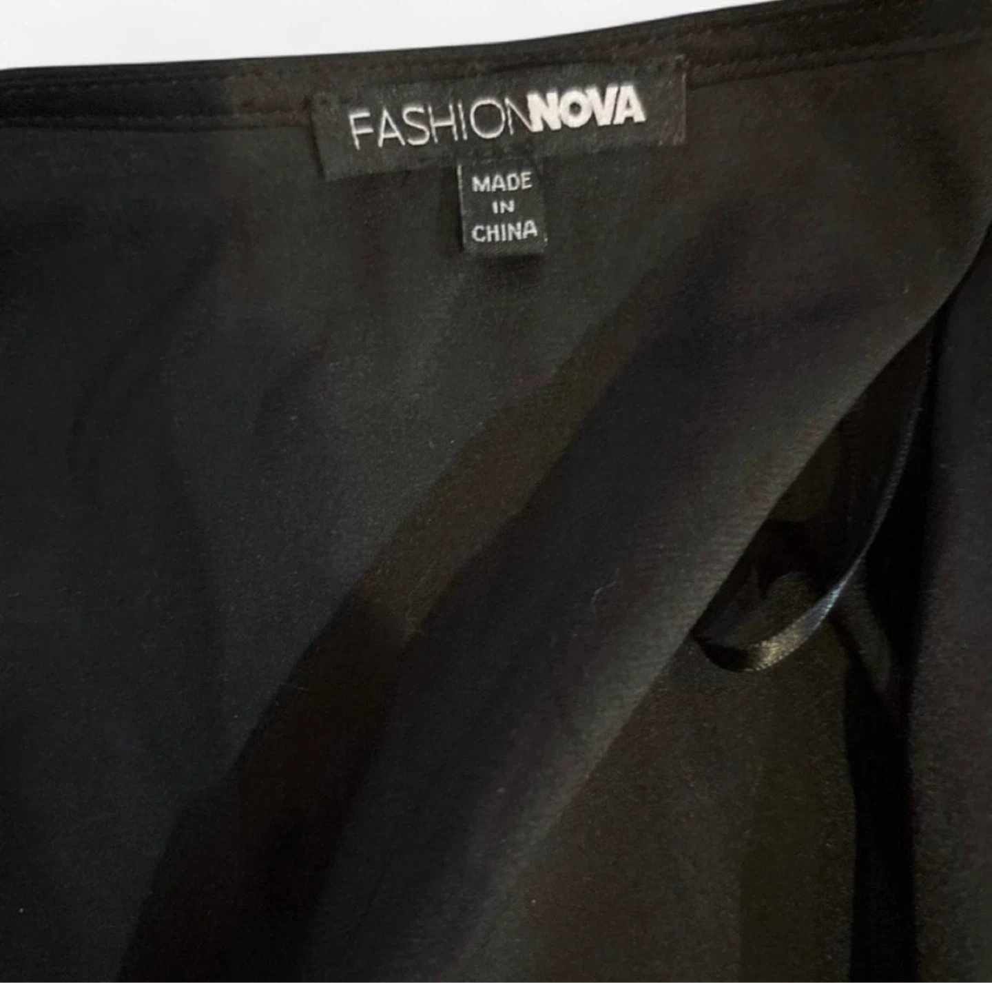 This Fashion Nova black dress features a twist front detail and long sleeves. It's made from 96% polyester and 4% spandex. Dress is size 1X.