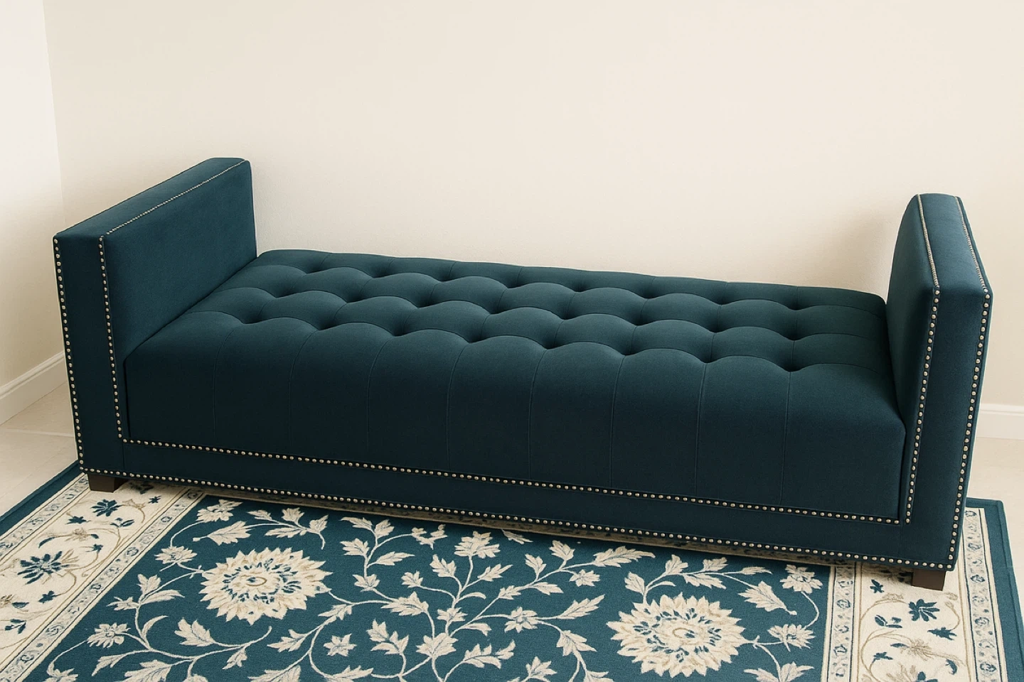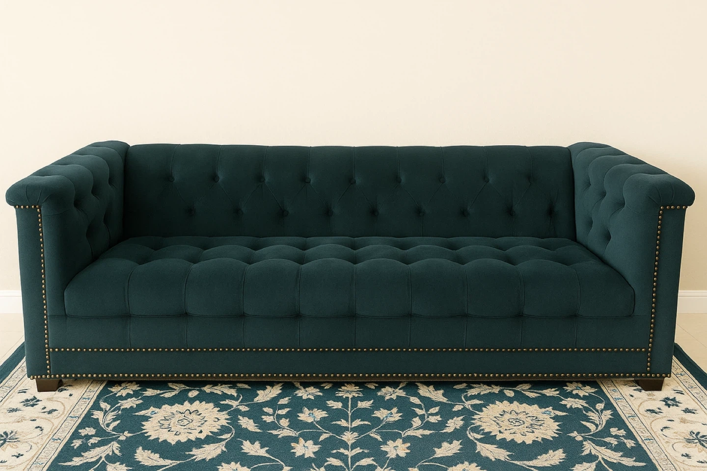 Selling a stylish tufted sofa and matching chaise. Both pieces are in great condition and would add a touch of elegance to any living space. The deep color and classic design make them versatile for various decor styles