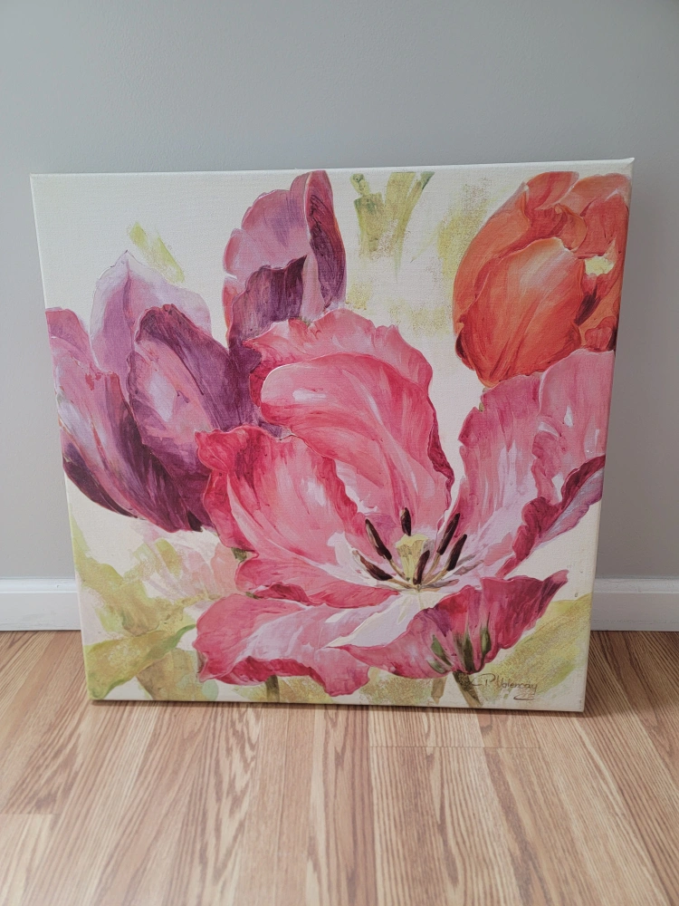This is a canvas wall art featuring a beautiful tulip flower design. It's perfect for adding a touch of floral elegance to your home decor
