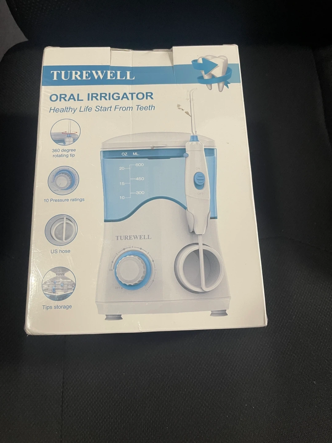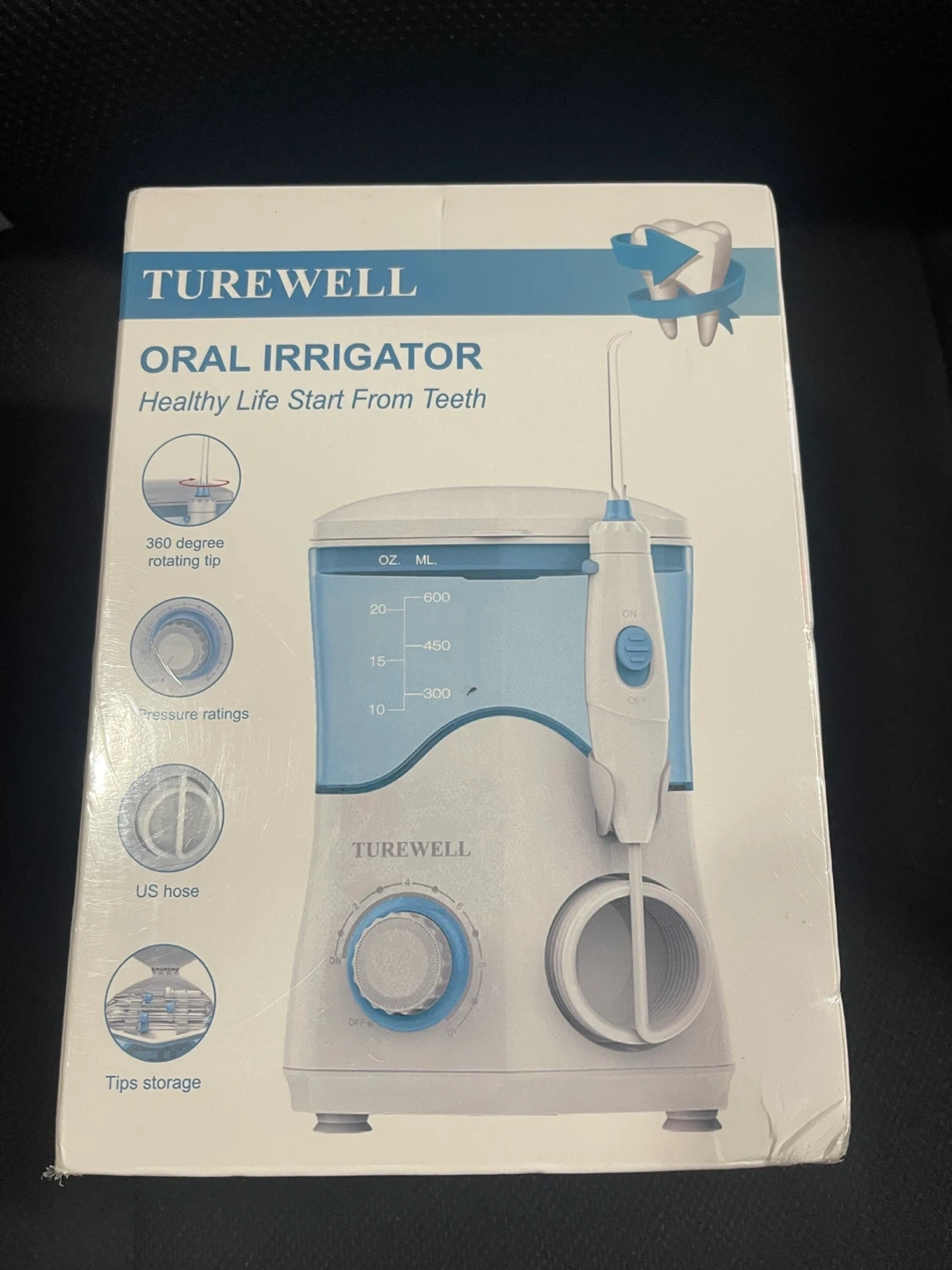 I'm selling a brand new TUREWELL Oral Irrigator, still in its original box! It features: - A 600ML high-volume tank - 6 kinds of unique tips - 10 pressure ratings - 3 minutes smart timer - 360 degree rotating tip It's designed to improve gum health, remove harmful food residue, and massage gums effectively