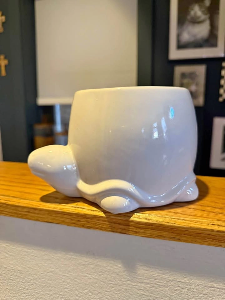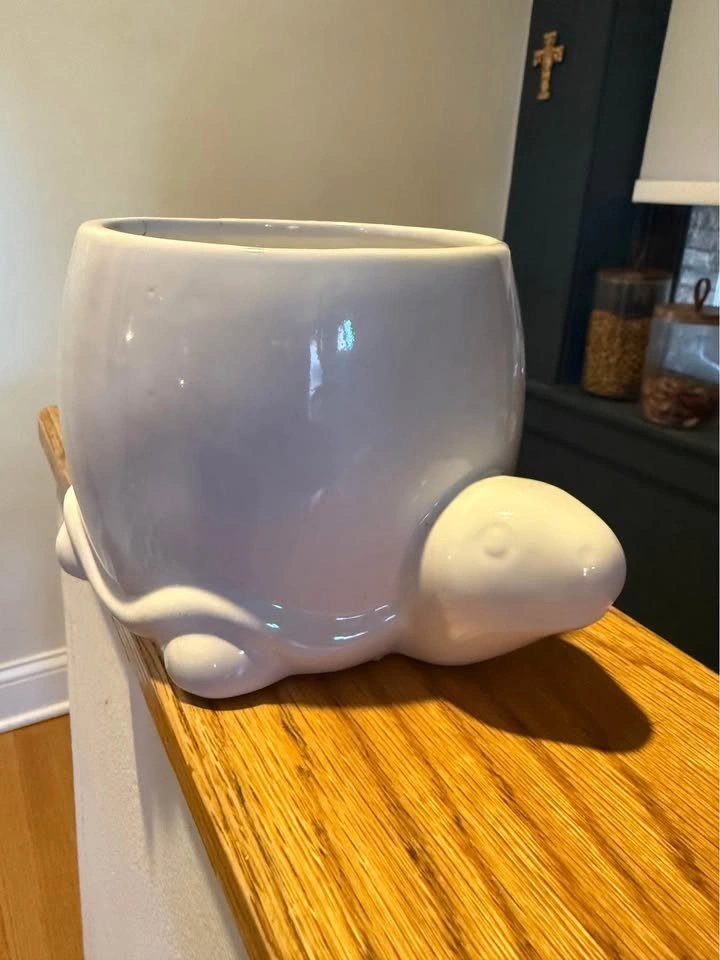 Brand new!! White ceramic turtle: 5”wide x 4.25” tall. Great size planter. Nice big opening on top. No drainage holes. Pickup in wicker park near Ashland and division