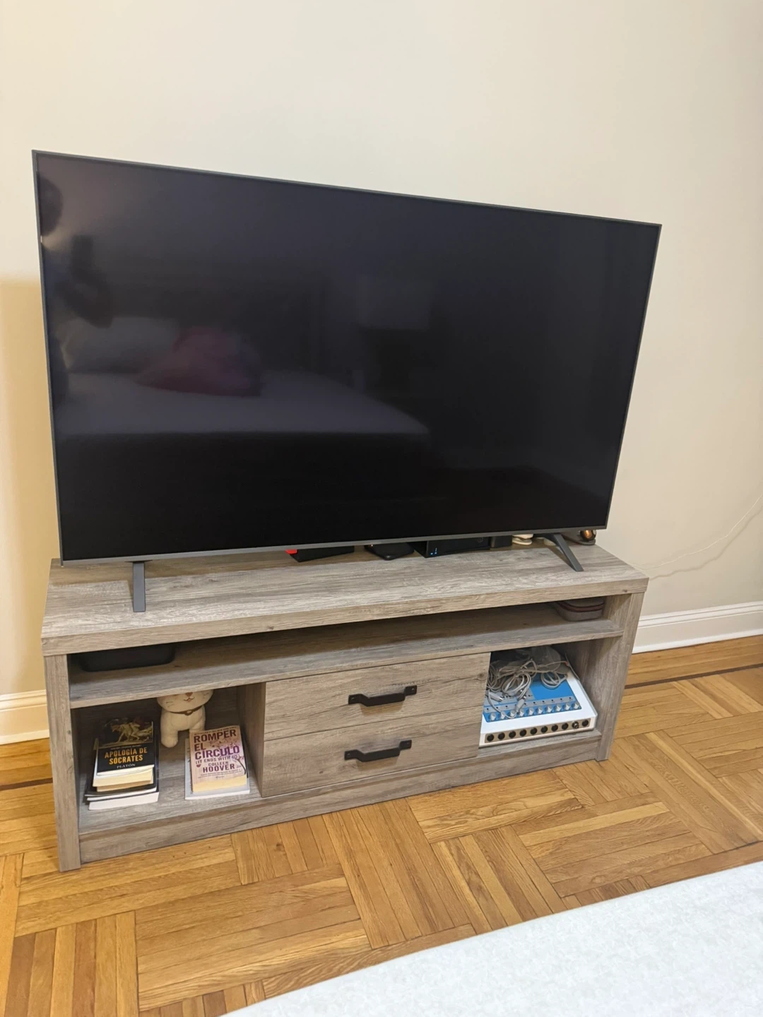 Selling a TV on a wooden stand. It's in great condition and ready for a new home! Perfect for your living room or entertainment area