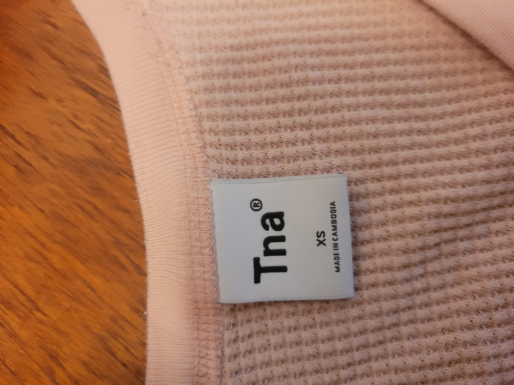 This Tna top is a lovely pale pink colour. It's made from a comfortable waffle knit material and features a classic crew neck. Size is XS.