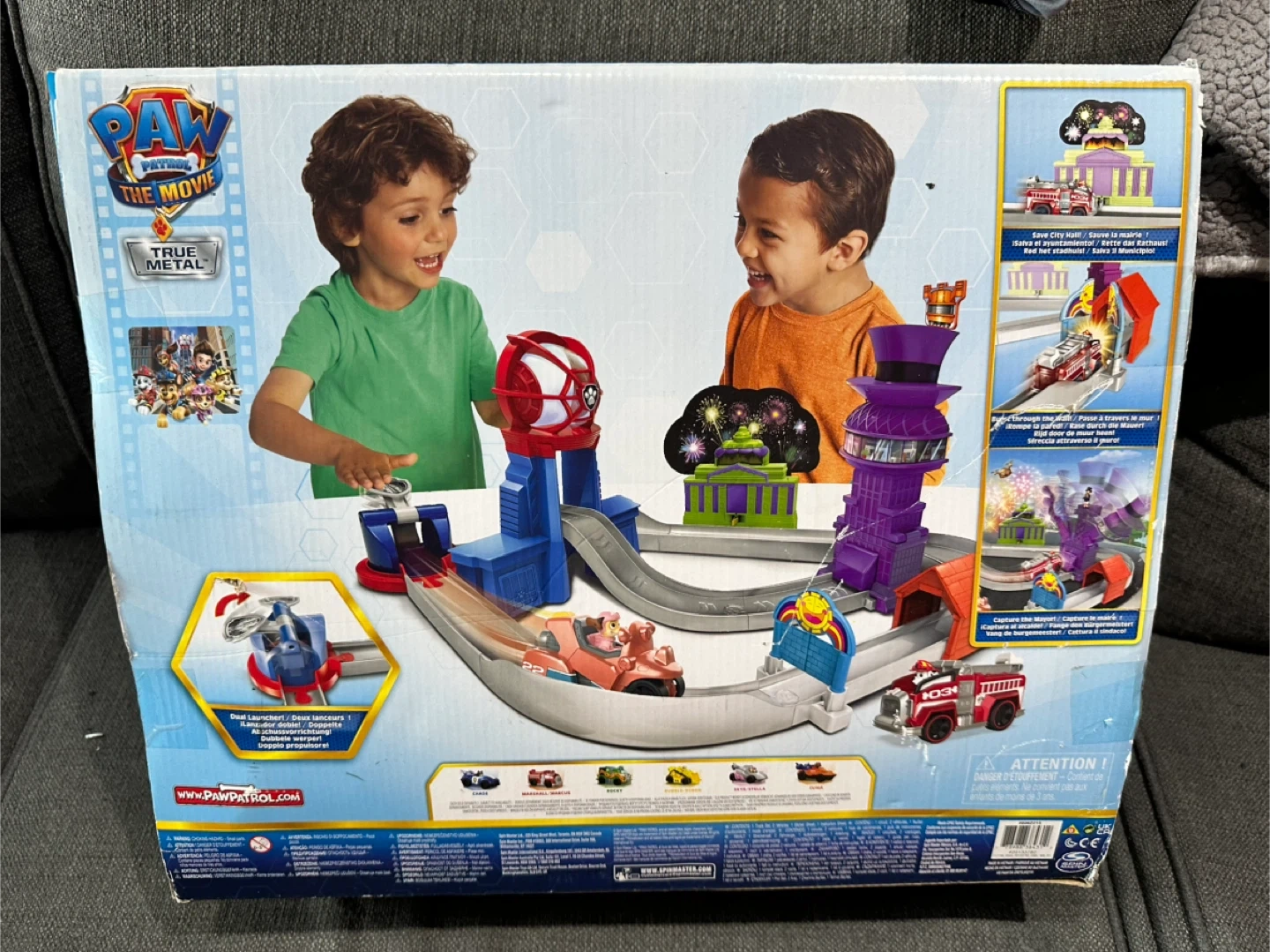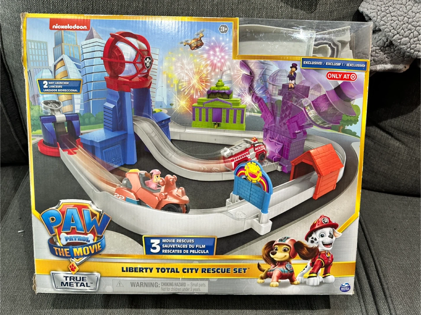 This Paw Patrol The Movie True Metal Liberty Total City Rescue Set comes with a 3-way launcher. It's perfect for recreating movie rescue missions. Includes 1 vehicle and play set pieces.