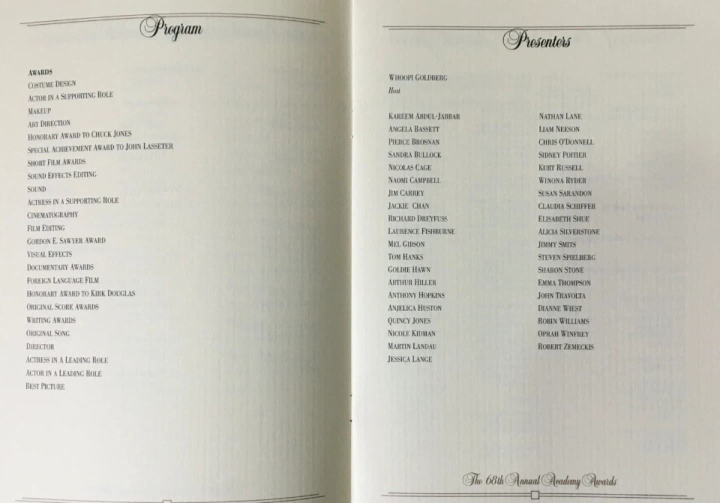 The 68th Annual Academy Awards Program