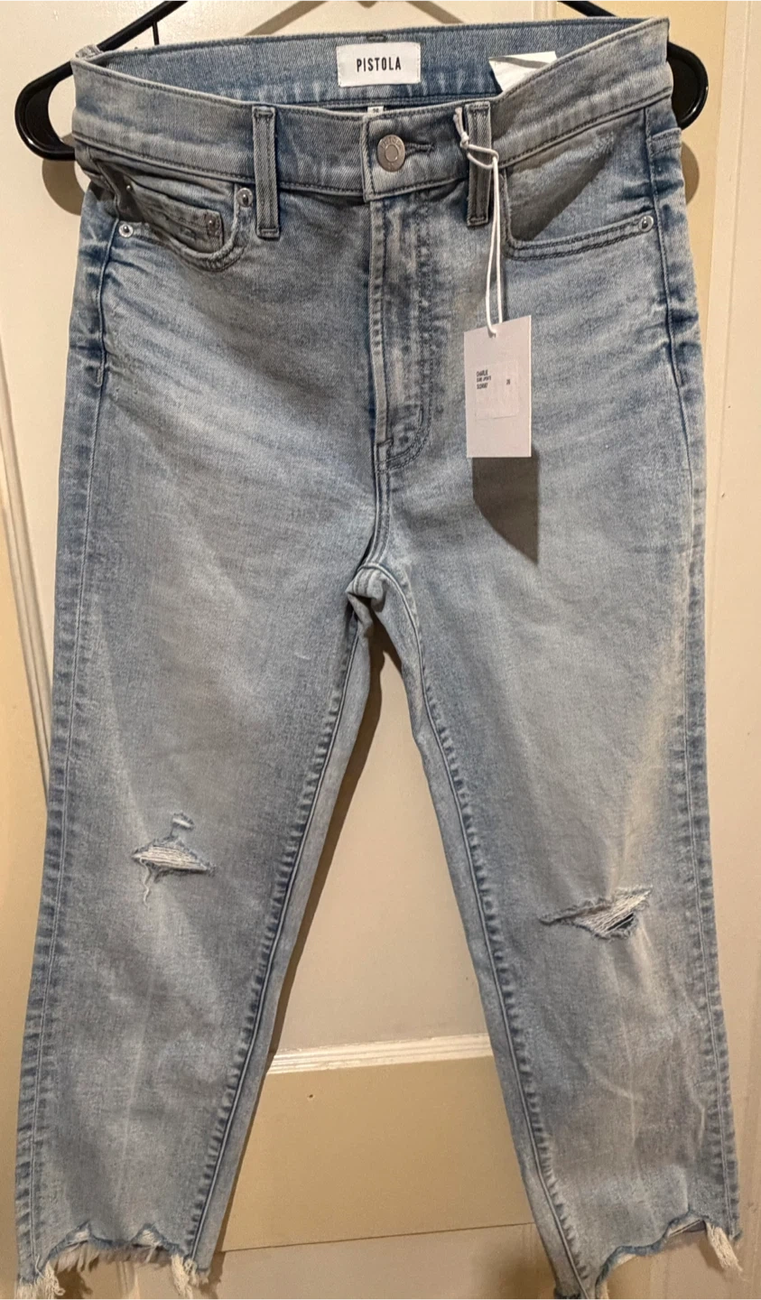 Pistola Distressed High Rise Straight ankle Leg Jeans Size 28