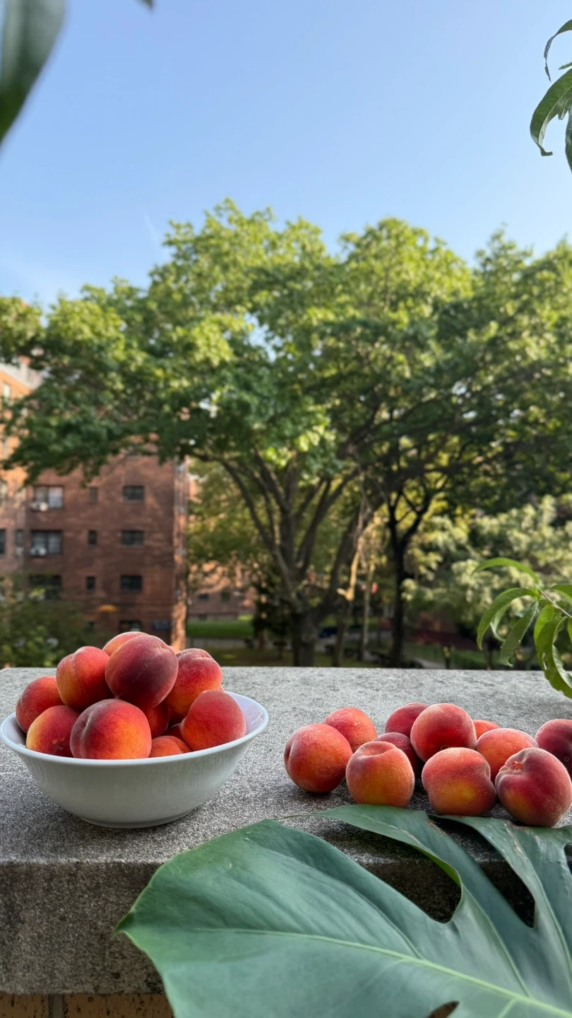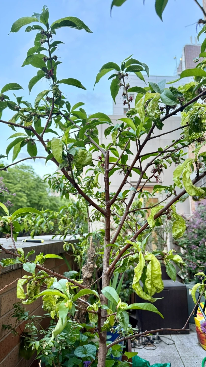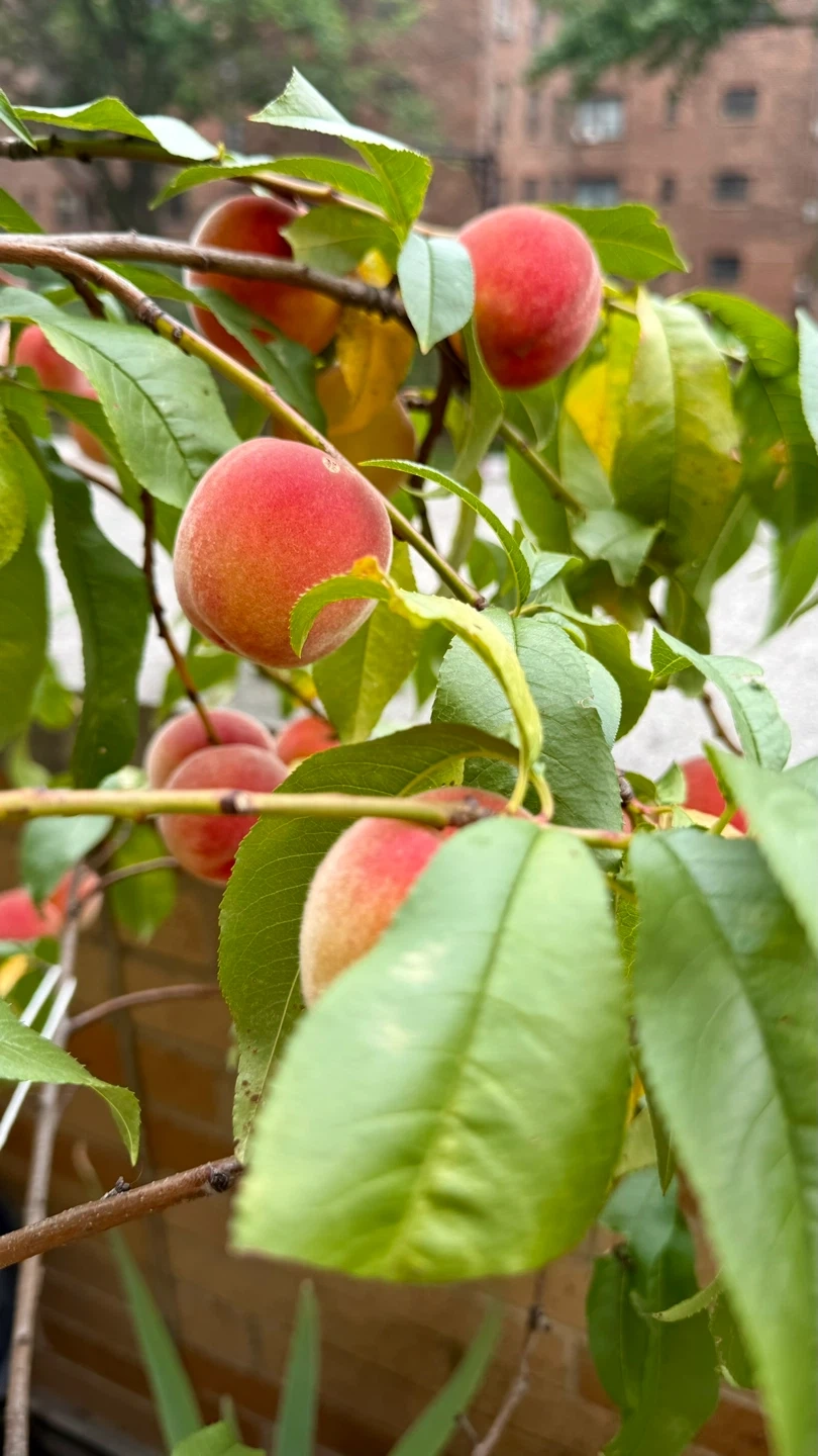 60Two peach trees w great track record of production—this year got about 30 small peaches per tree, when I’ve thinned aggressively in the past got 12 grocery store sized peaches. They have done well on a north facing terrace in Brooklyn, they’d probably love a south facing. Currently in grow bags in a planters with a bench in between. Full disclosure that it had some ?fungus that caused some curled leaves this year but did not appear to reduce crop volume. I travel often so they get plenty of mild neglect and still do great. Will take more photos to illustrate current size—about 6’ tall in grow bags in planters with a bench in between