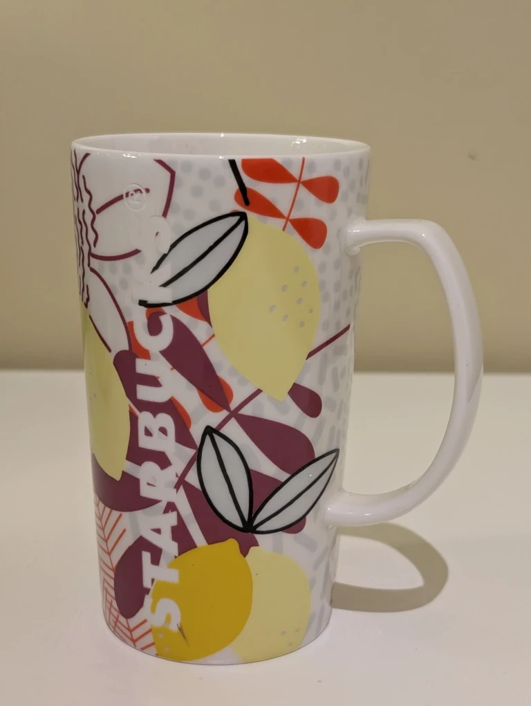 Selling a cute Starbucks mug with a lemon pattern! It's in great condition and holds 16 fl oz (473ml). Perfect for your morning coffee or tea