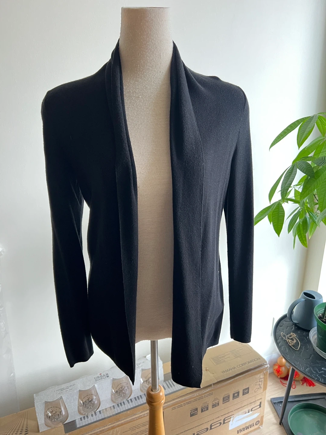Banana Republic black shawl open collar cardigan. Size small.