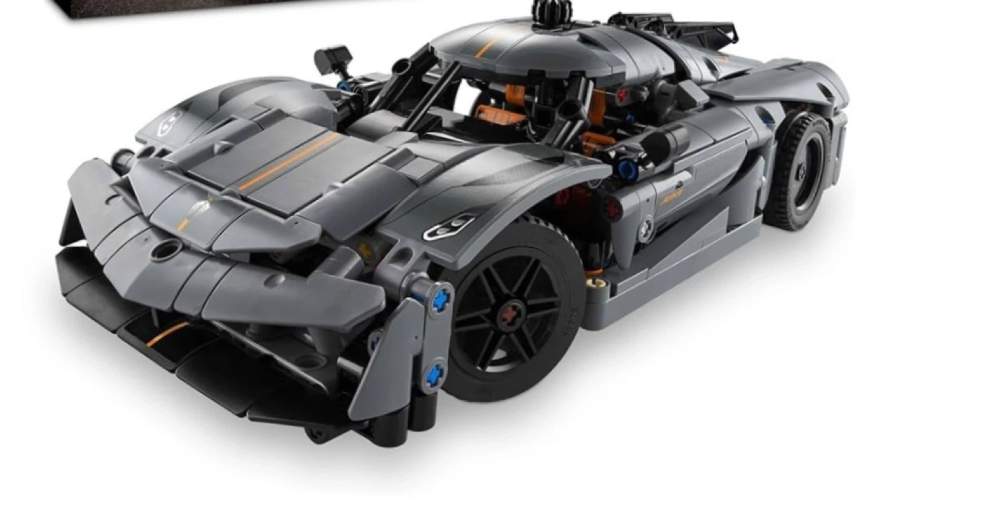 This is a LEGO Technic McLaren race car. It's a detailed model with realistic functions. It's primarily gray with orange accents. It's a great build for car enthusiasts!
