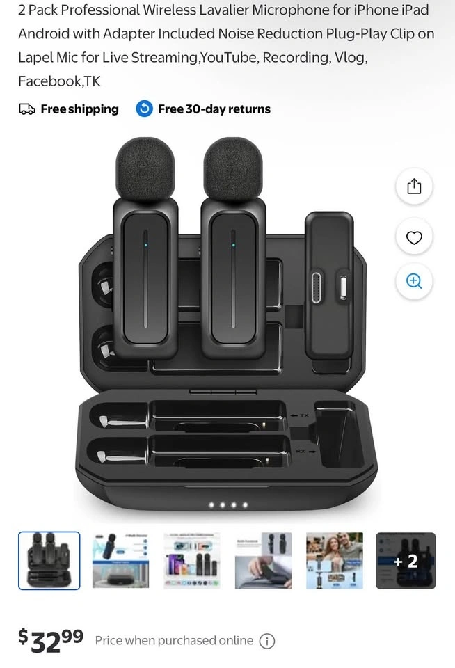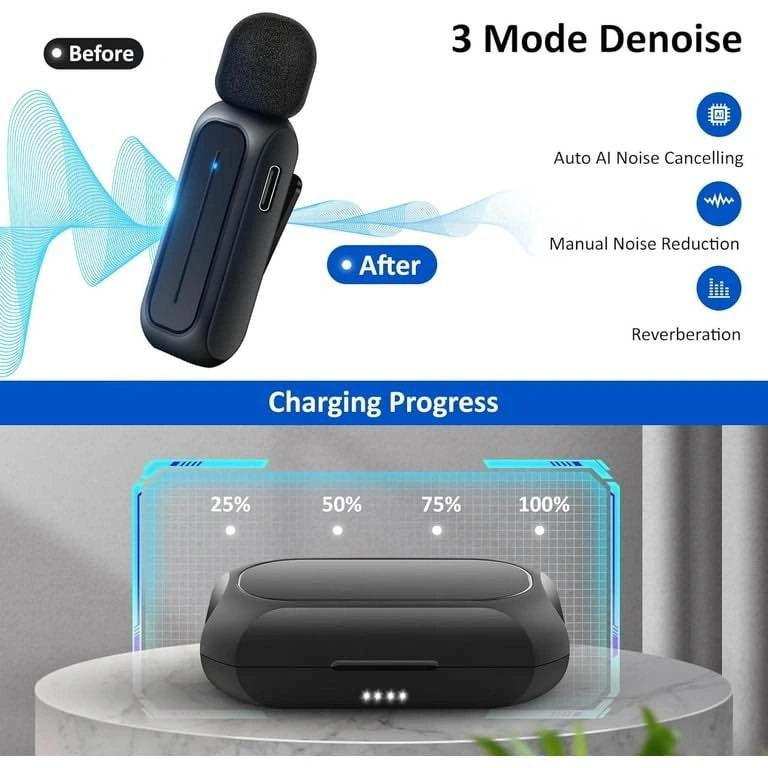 Awesome wireless lavalier mic set. Has 2 mics and 1 receiver. Comes with charging case. Super compatible with iPhone, iPad, and Android devices, dual Lighting & USB-C connector. Features 3 noise reduction modes for clear sound. Great for streaming, YouTube, vlogging.