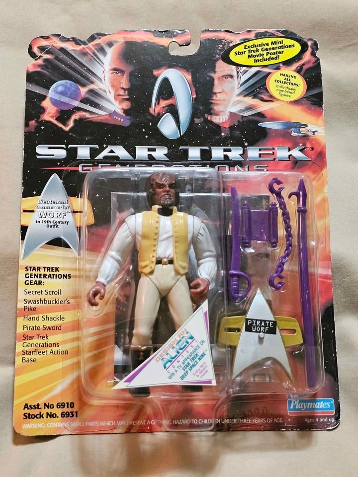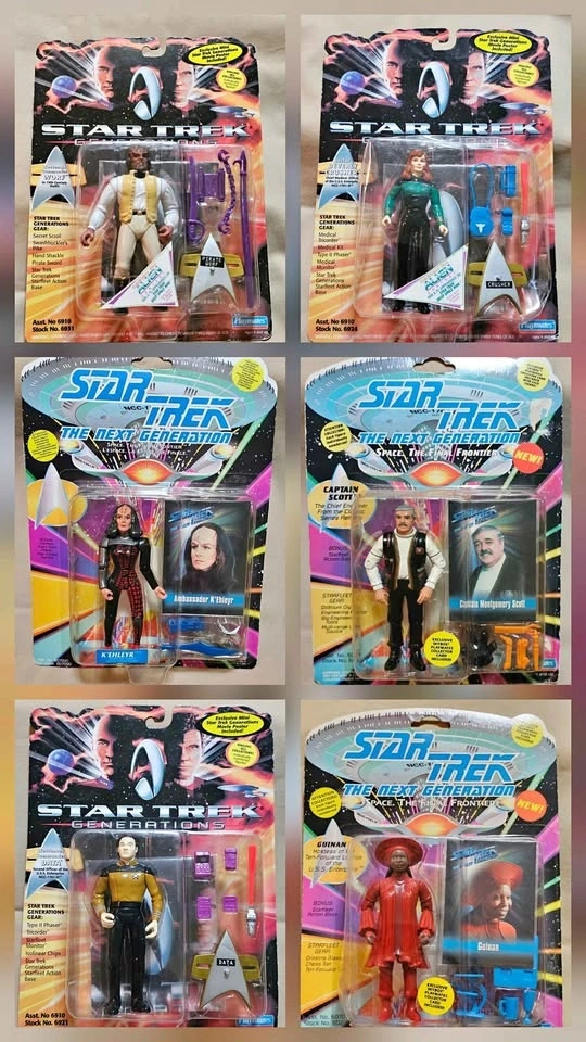 Collectible Playmate Toys Star Trek action figures from Star Trek Generations (1994) and The Next Generation (1993). $20 each or all 6 for $100. All figures are new in original sealed packages. Packaging is in 8-9.8/10 condition. Your choice: Doctor Beverly Crusher Lieutenant Commander Worf Ambassador K'Ehleyr Captain Montgomery Scott Lieutenant Commander Data Guinan Pick up from a smoke-free home in the McKenzie Lake/Douglasdale area in SE Calgary.