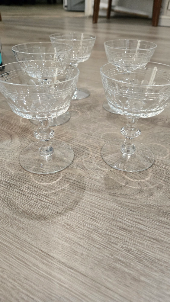 Set of 5 Vintage Etched Crystal Cocktail/Champagne Glasses
