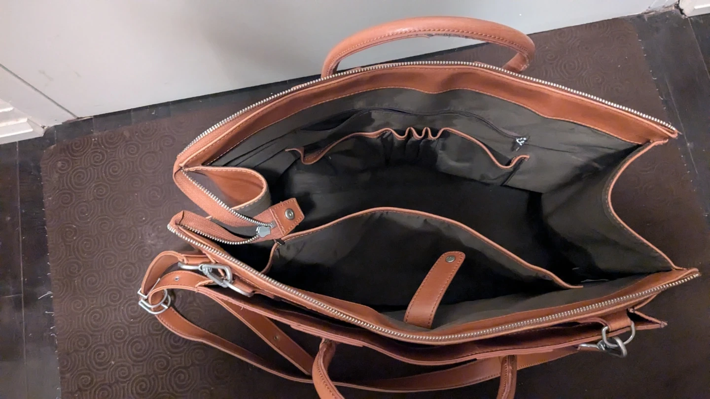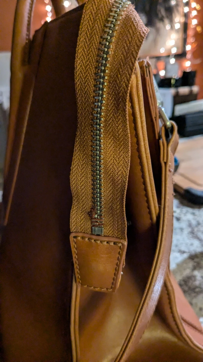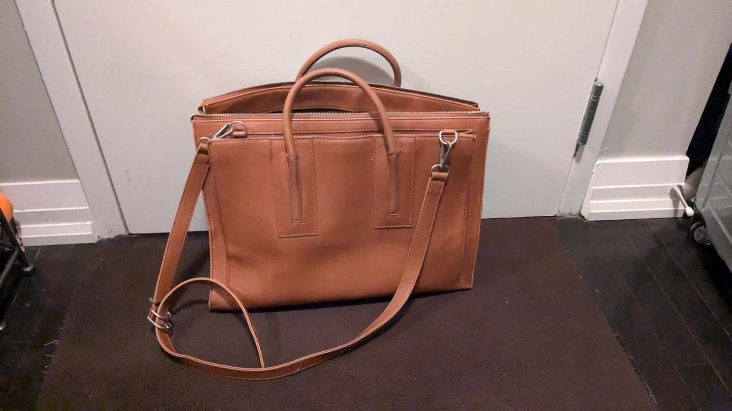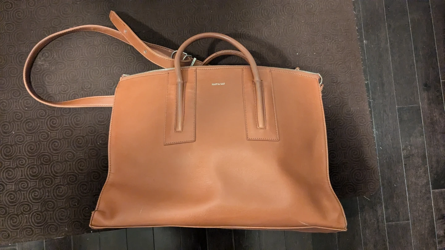 Gently used Matt & Nat briefcase in a beautiful tan brown colour. It's made of vegan leather and has a stylish, professional look. Perfect for carrying your laptop and documents!