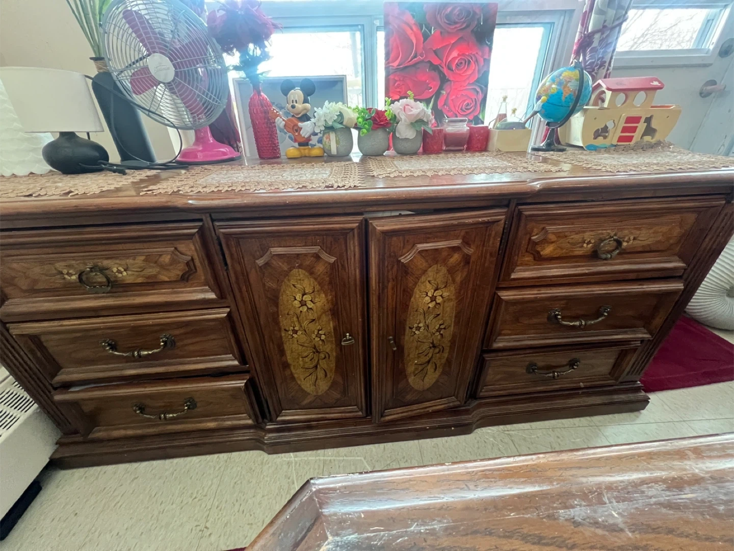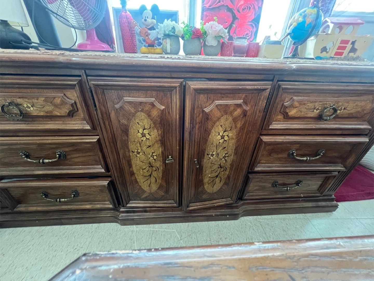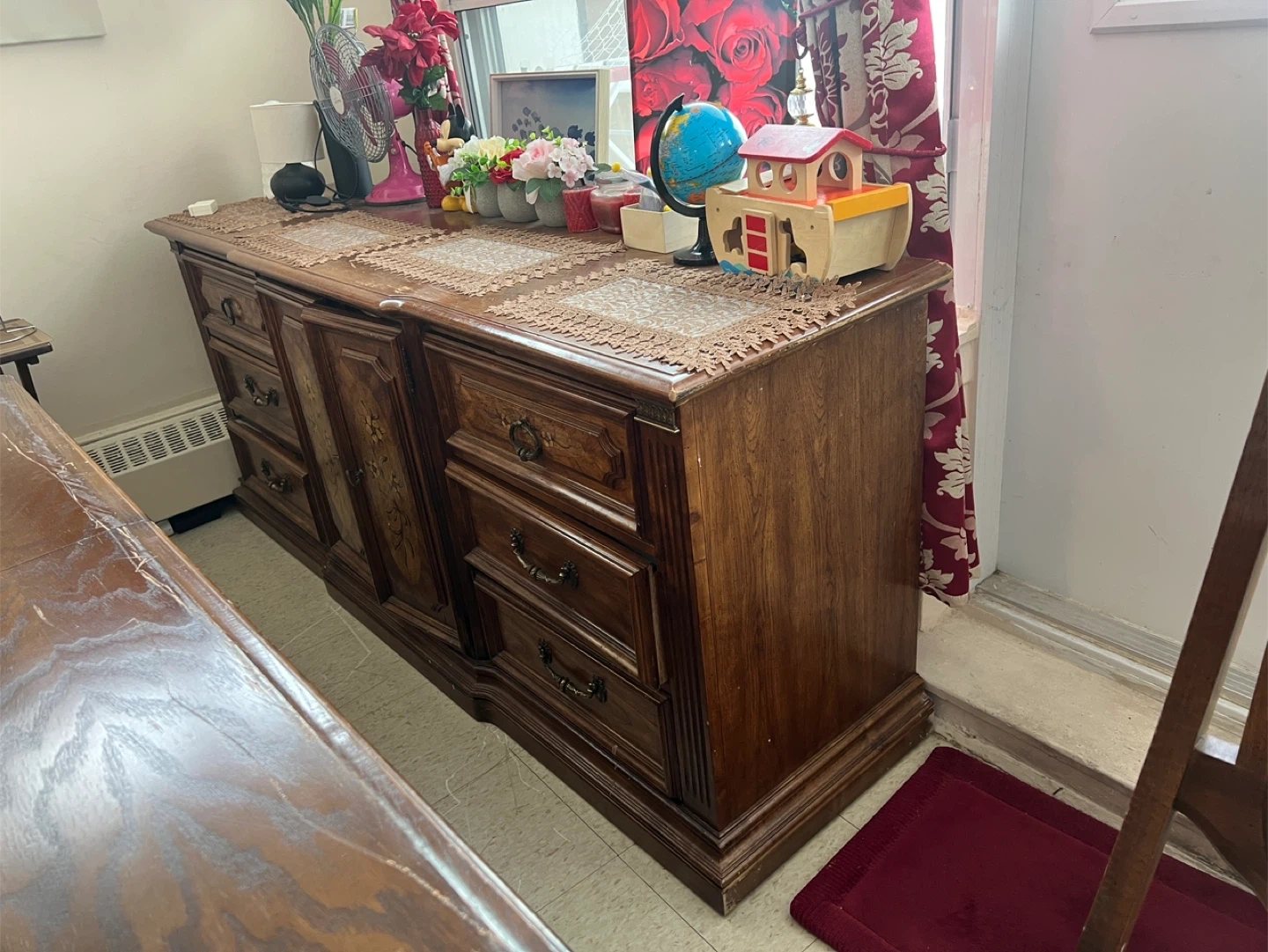 Vintage wooden dresser with ornate detailing