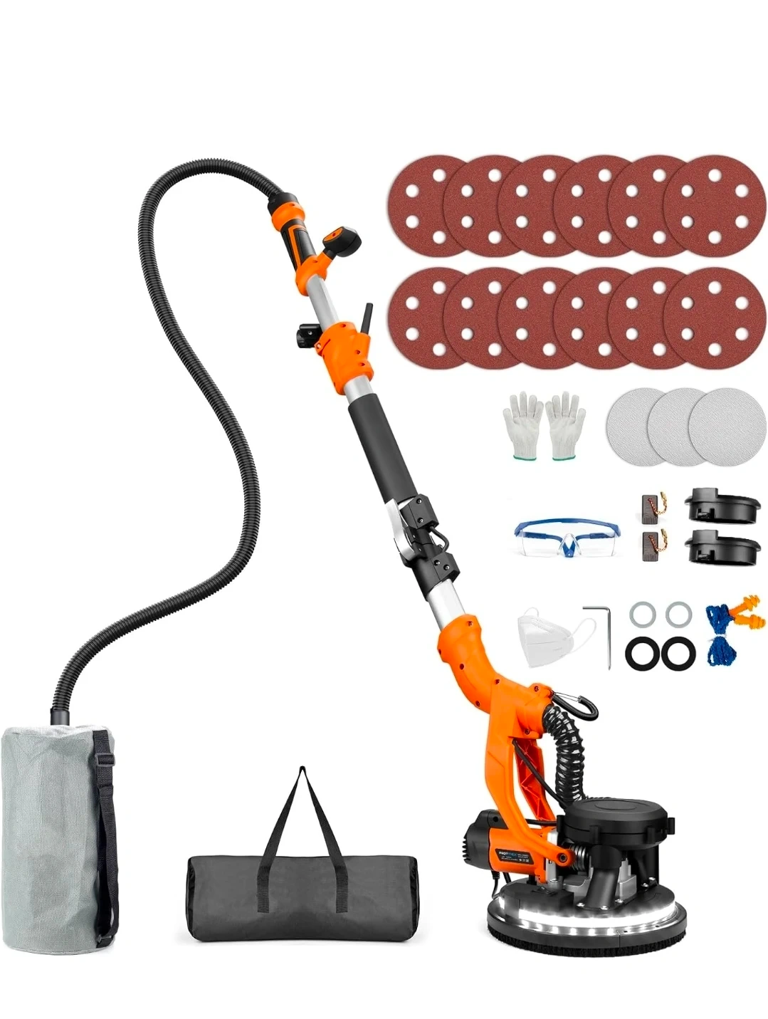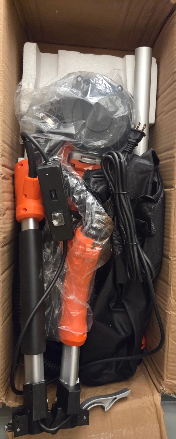I'm selling an ALEKO Electric Drywall Sander, complete with an LED light for better visibility! It comes with a carrying bag and a dust collection bag. Also included are sanding discs, gloves, safety glasses, a mask, and other accessories, all in the original box