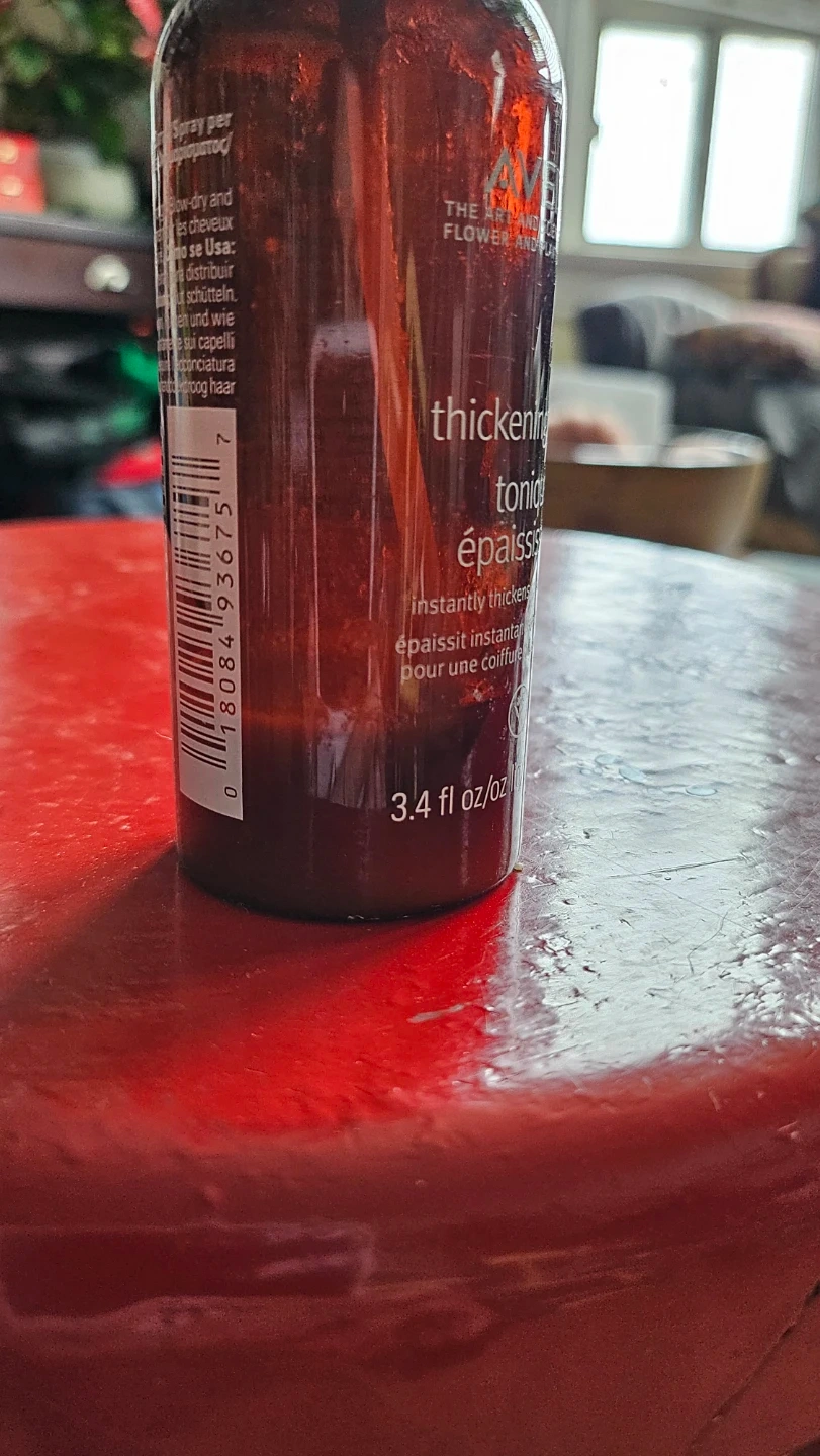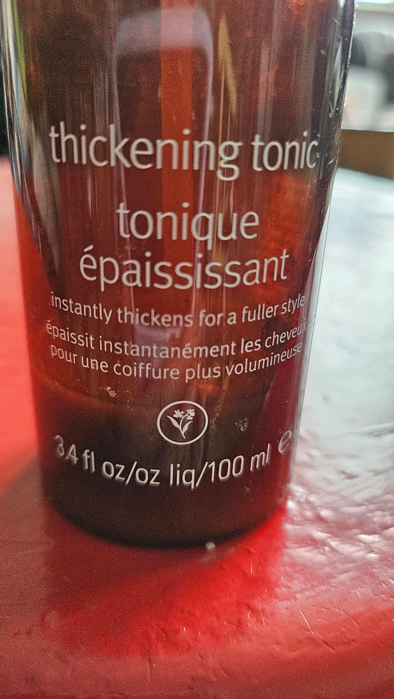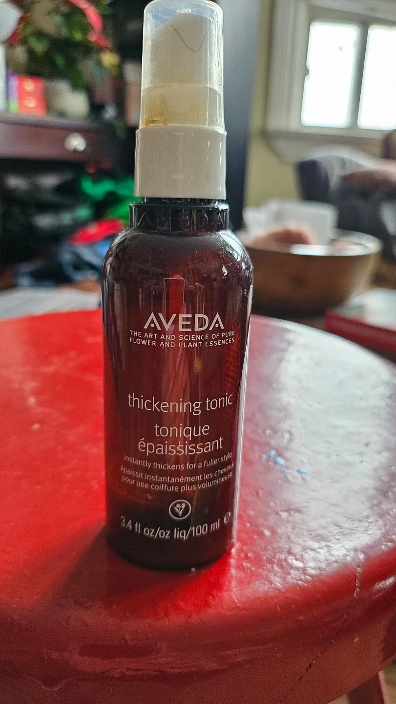 This Aveda thickening tonic instantly thickens hair for a fuller style. A tiny bit goes a long way. End of the bottle, but good for at least 8 uses. This product is great for anyone looking to add volume to their hair.