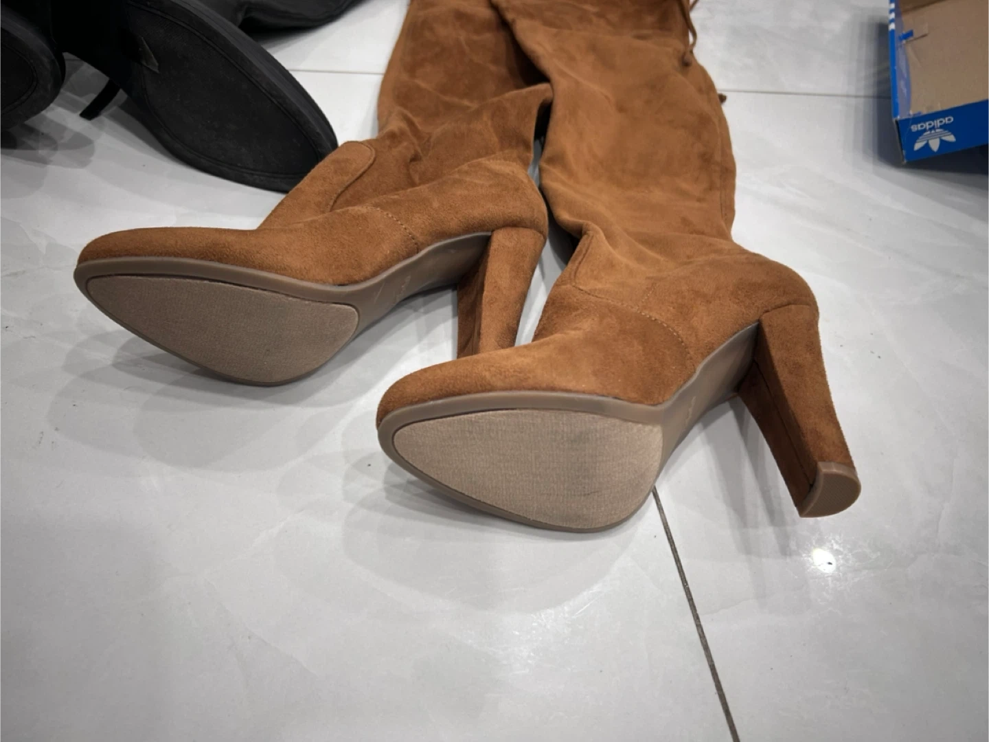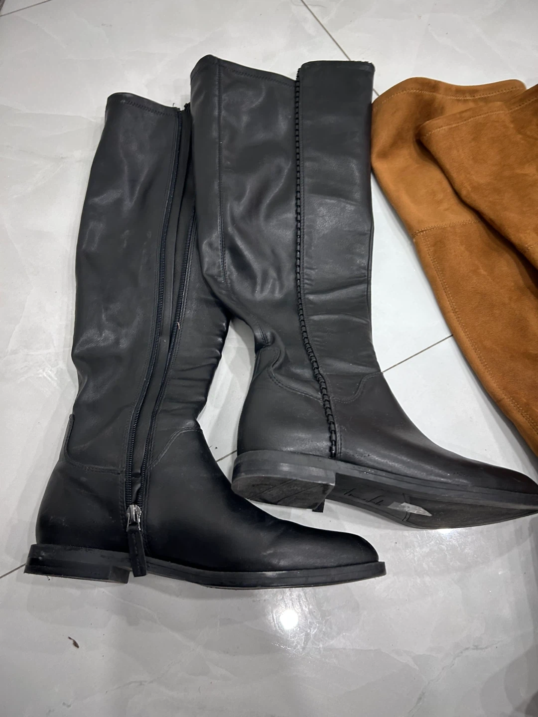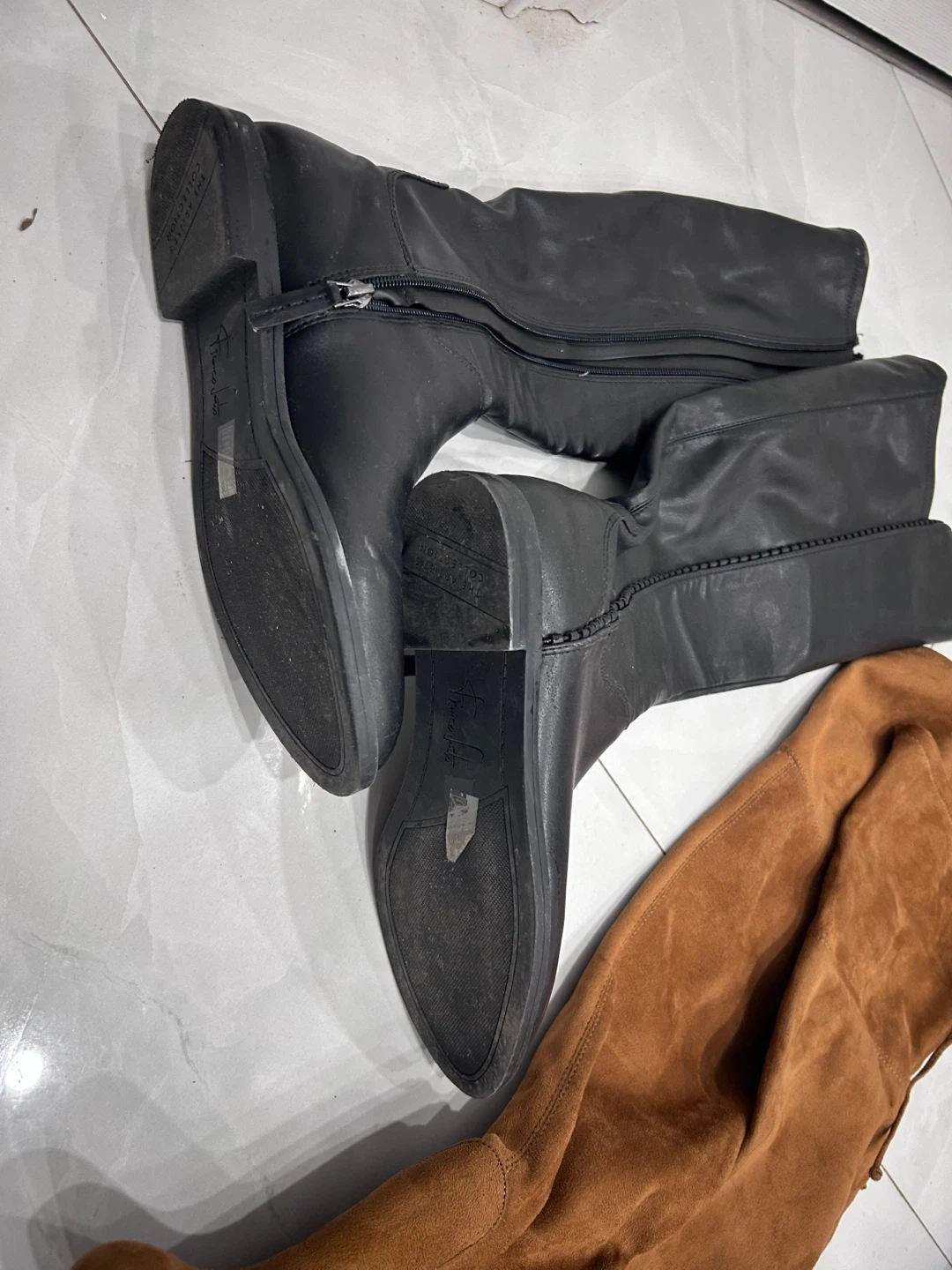 Selling two pairs of over-the-knee boots! One pair is black and the other is a brown suede. Black leather franco sarto size 6.5 and brown one (zijisoho) size 7 Two pairs for $65