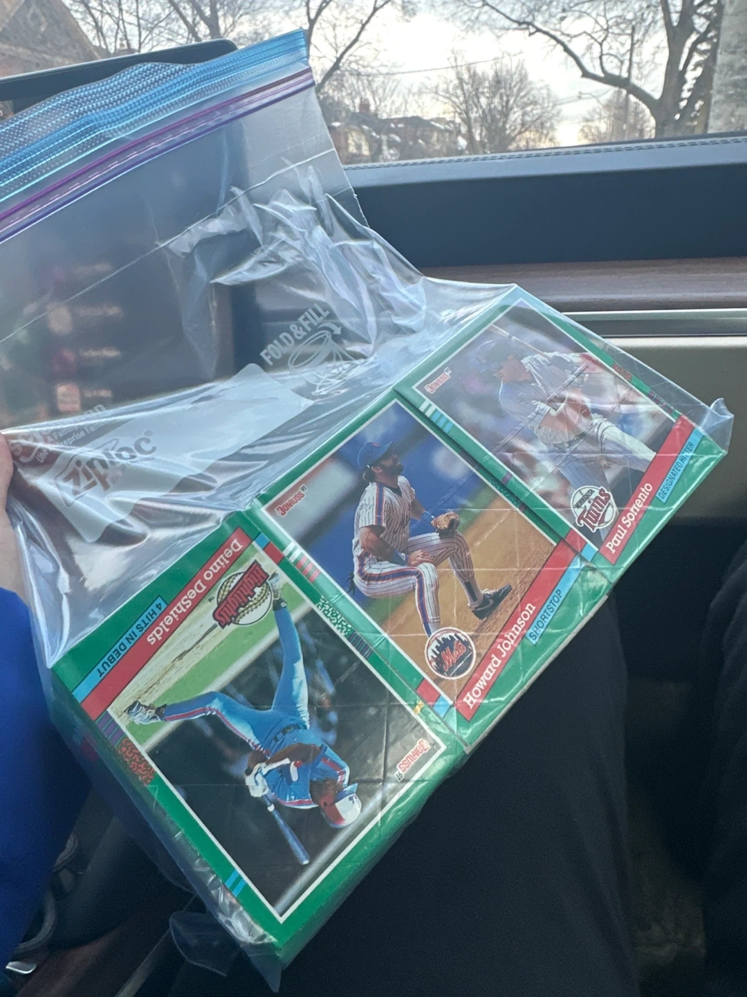A ziploc back full of old baseball cards and some basketball cards and price is negotiable and will accept some trades