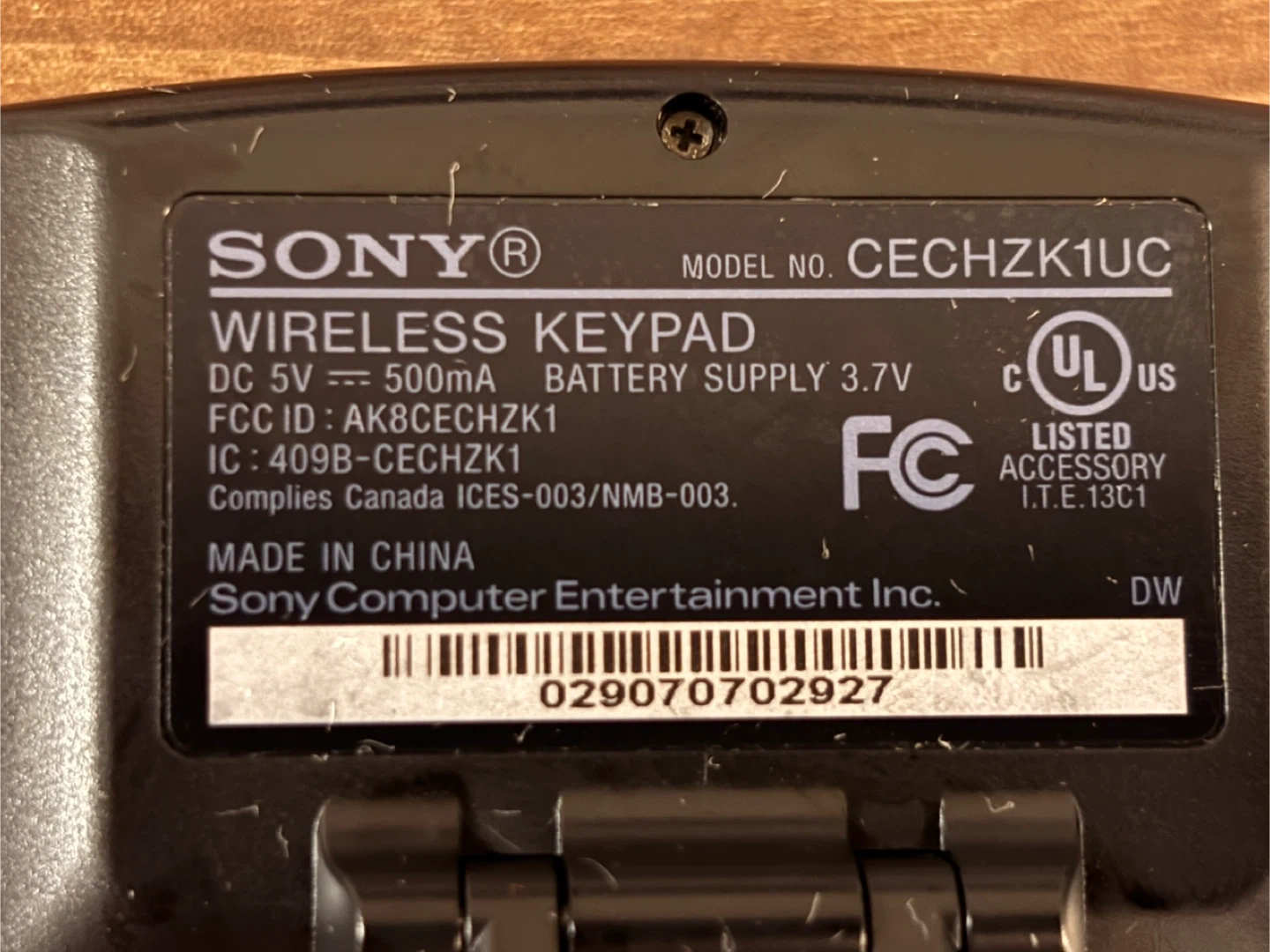 This is a Sony Wireless Keypad, model CECHZK1UC. It's designed for PlayStation 3 consoles. This accessory provides a convenient way to input text and commands.