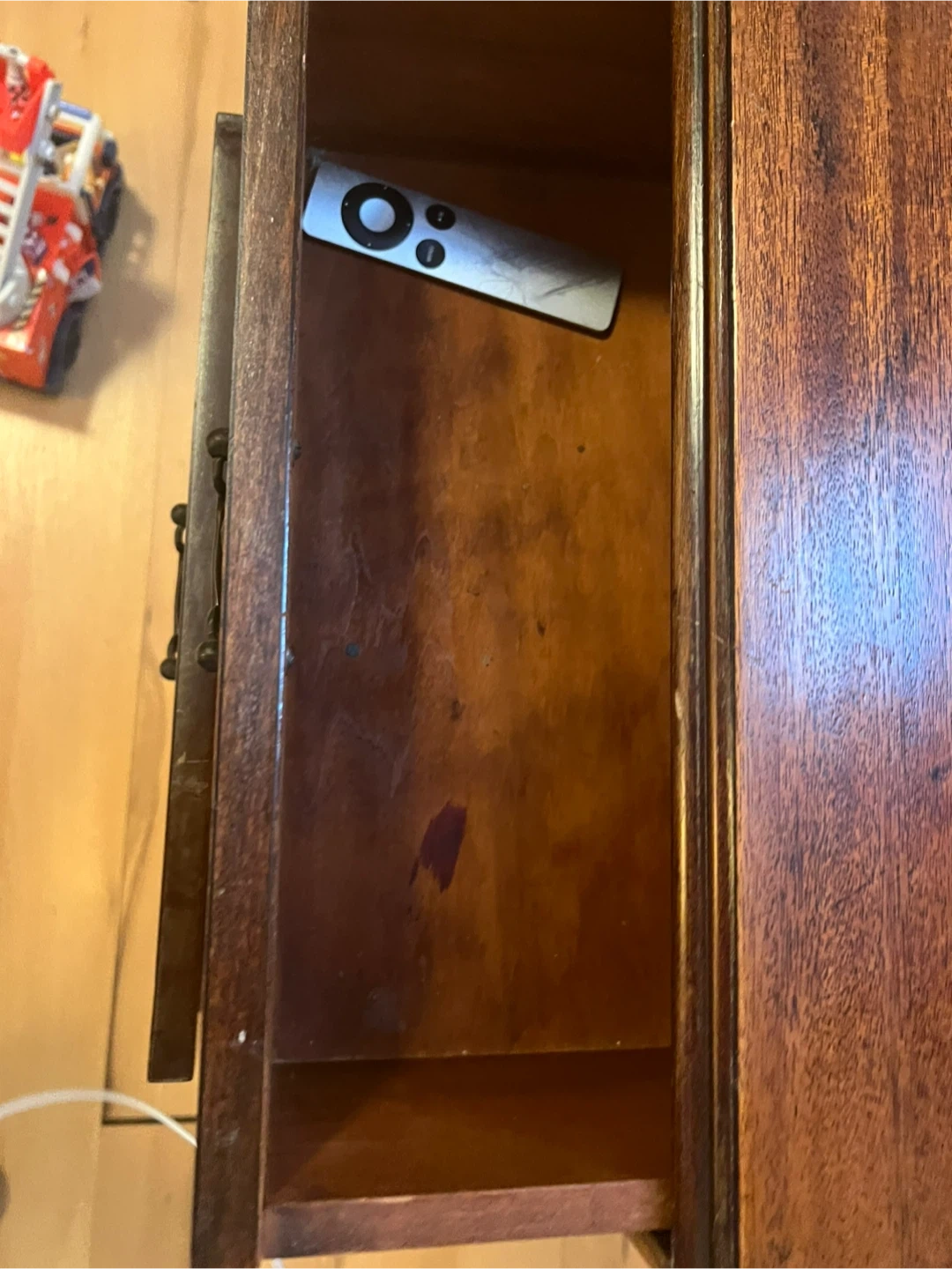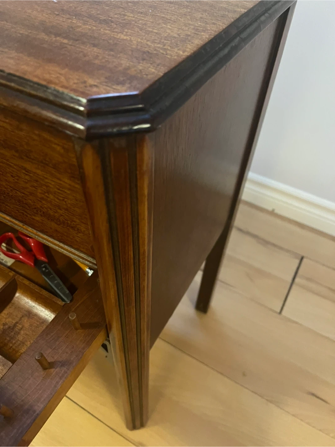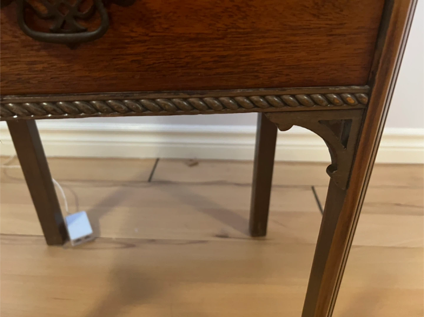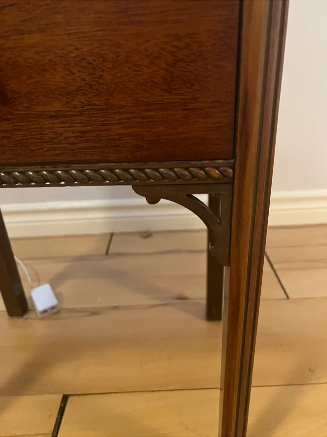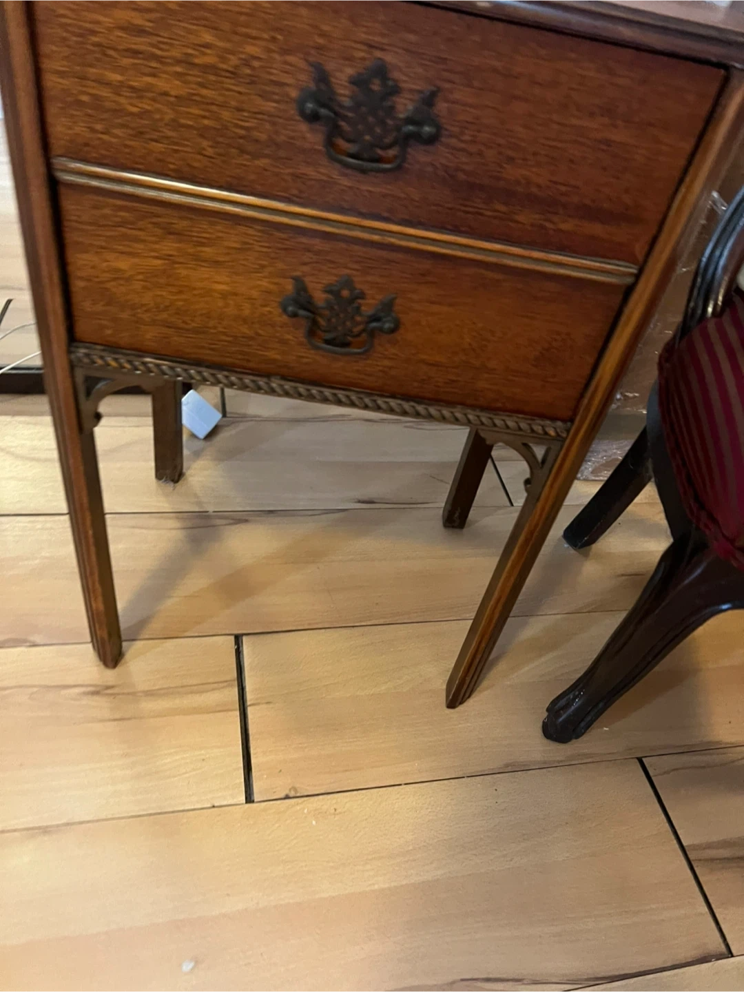 Here's a lovely wooden side table with two drawers! It's perfect for adding a touch of classic style to any room. The drawers provide handy storage, and the wood finish gives it a warm, inviting look