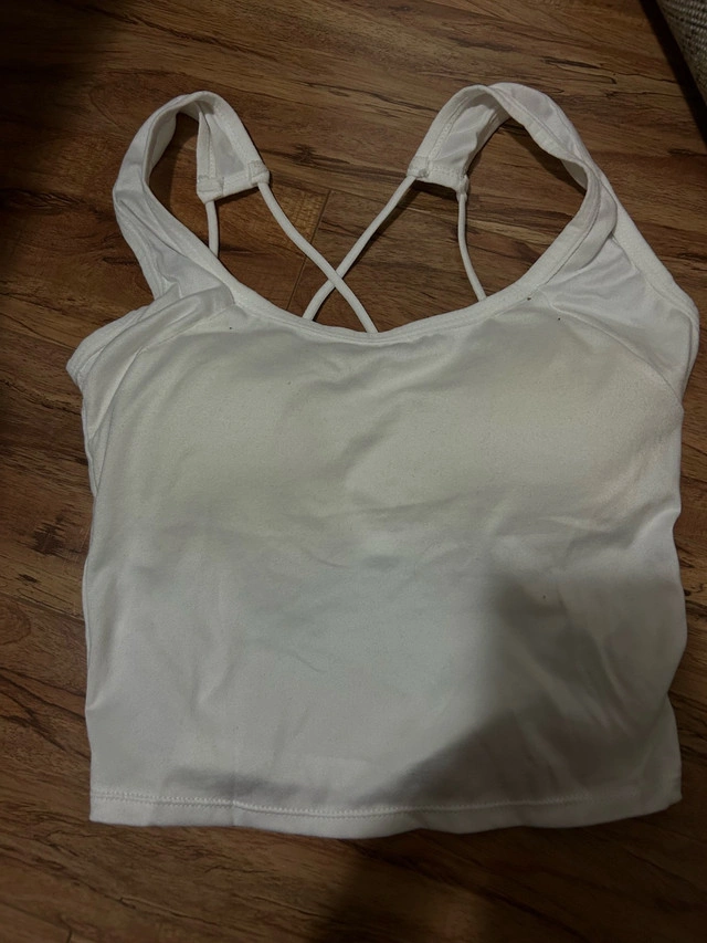 Selling 4 workout crop tops in different colours. They have a criss-cross back design. Great condition. Never worn! Size: small