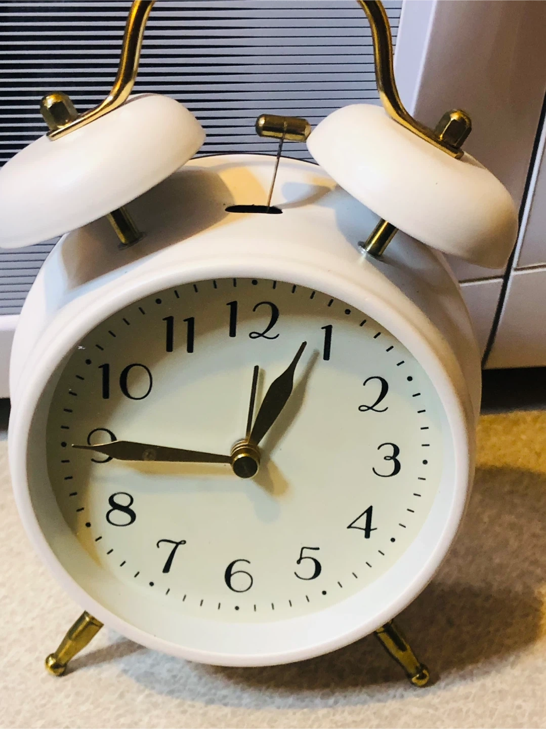 🏆 White Classic Alarm Clock with Gold Accents