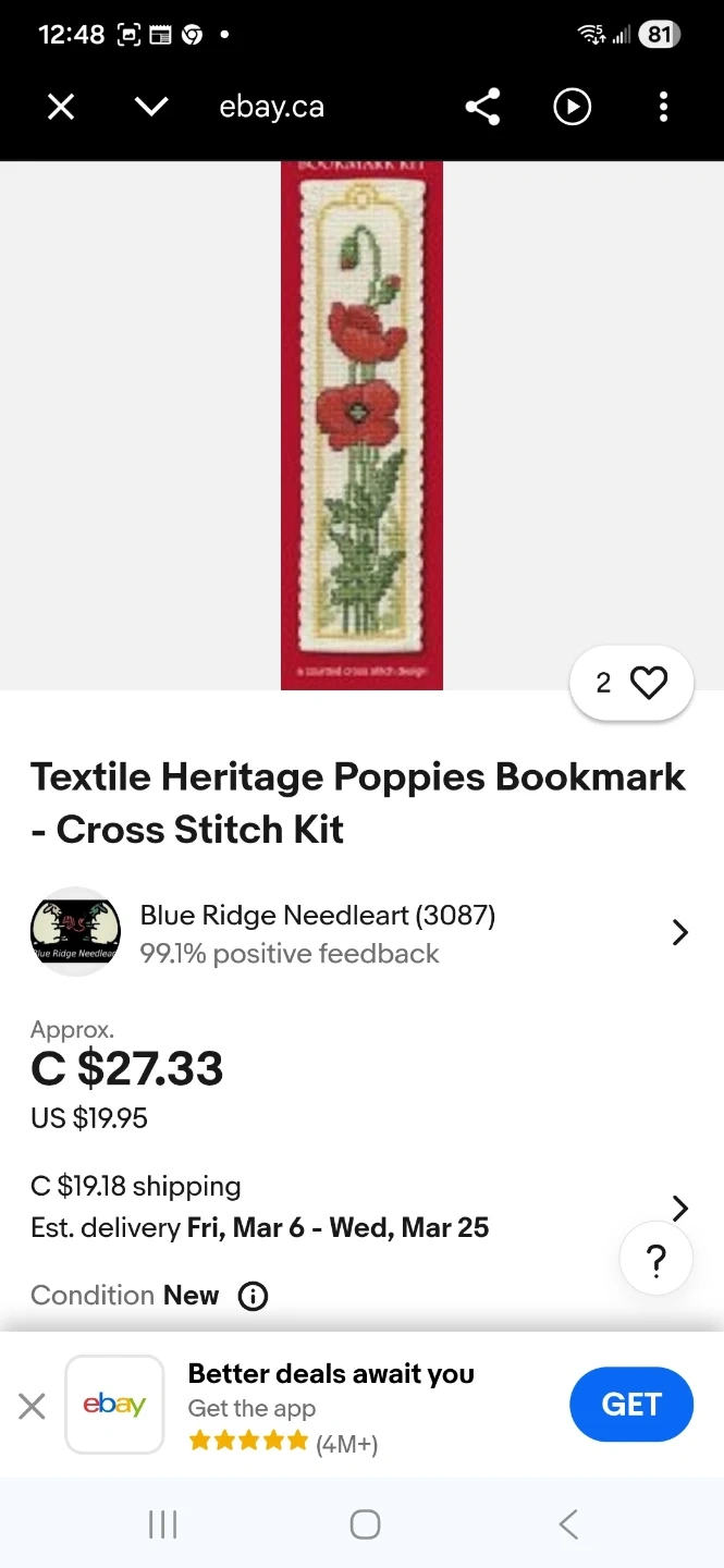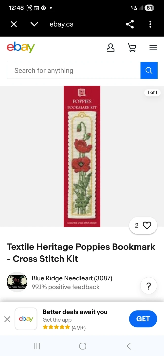 This is a Textile Heritage Poppies bookmark cross stitch kit. It includes everything needed to create a beautiful poppy bookmark. It's a great project for crafters!