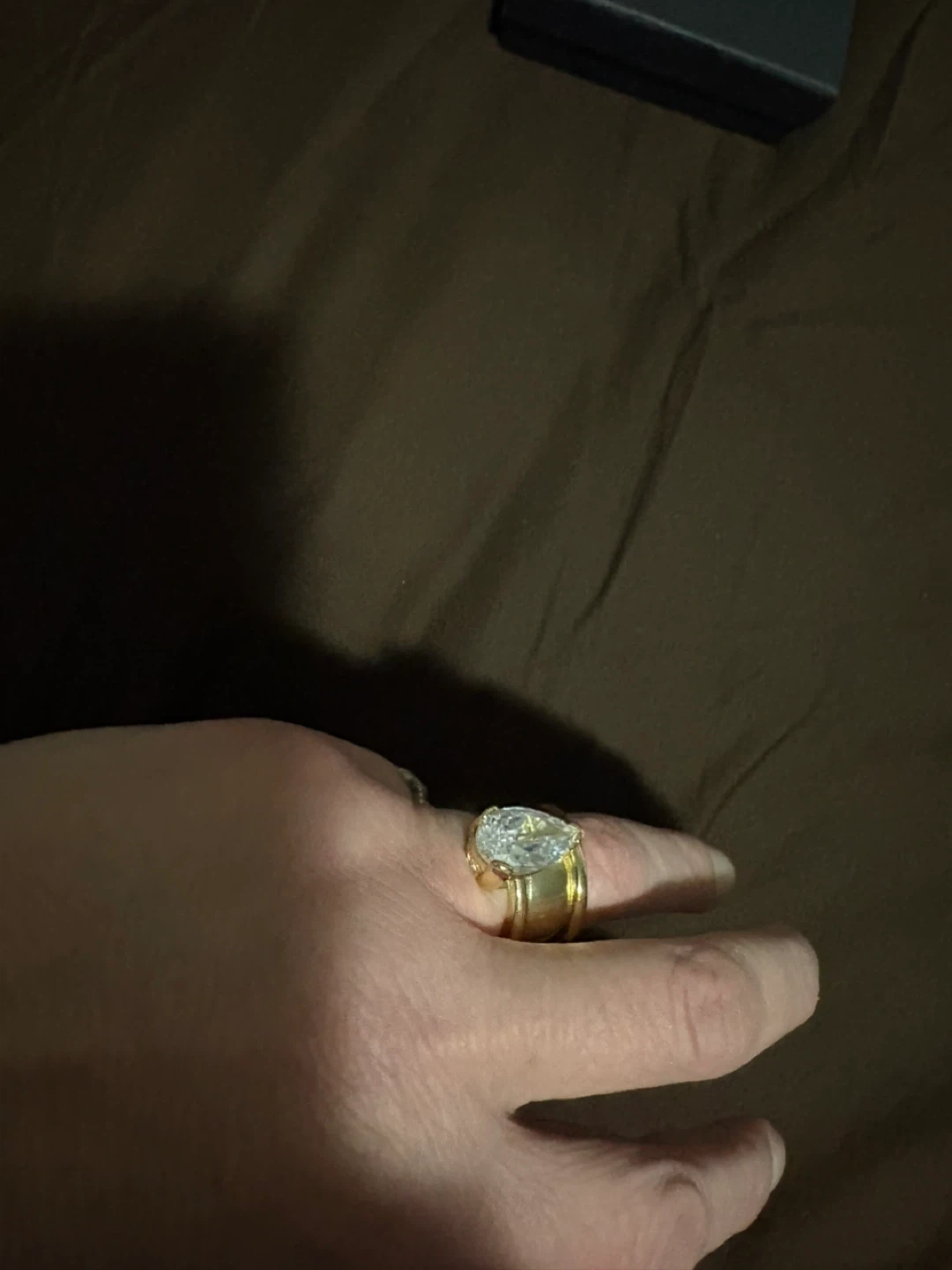 Gold-tone Ring with Pear-shaped Crystal