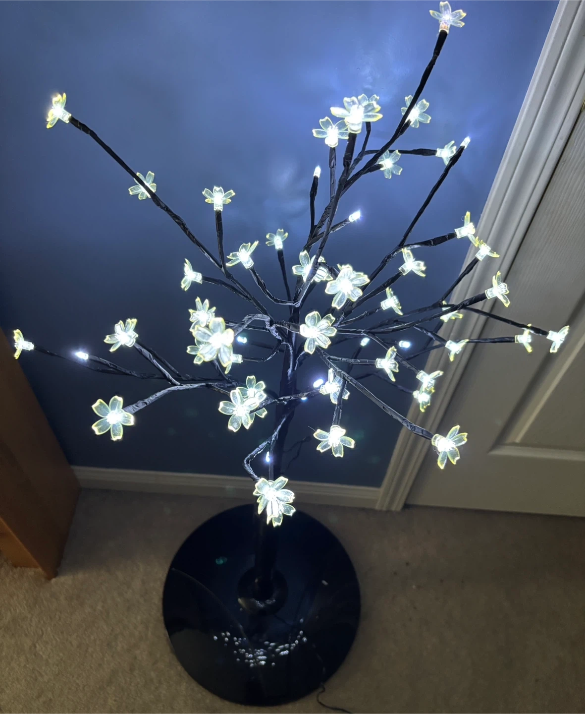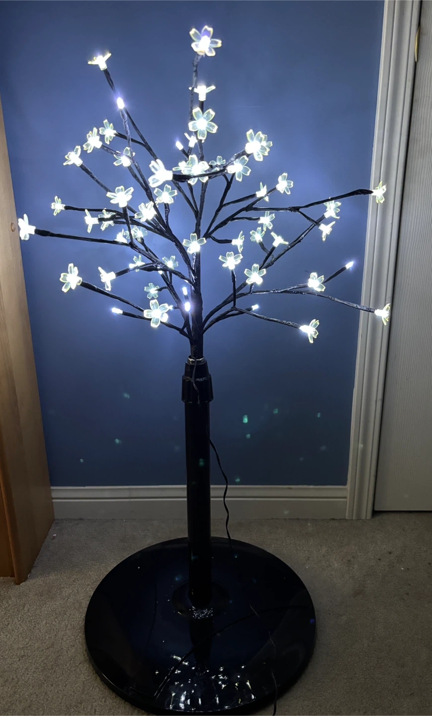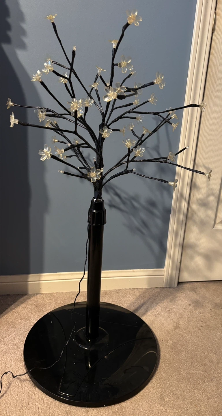 Beautiful LED lights cherry blossom Christmas tree … for every happy occasion all year, for many years! Height about 3 feet (adjustable). It features a black metal base and branches with delicate white flower/bud lights. It's in great condition and ready to brighten up your space. For sale in Brampton near Fletchers Parkette