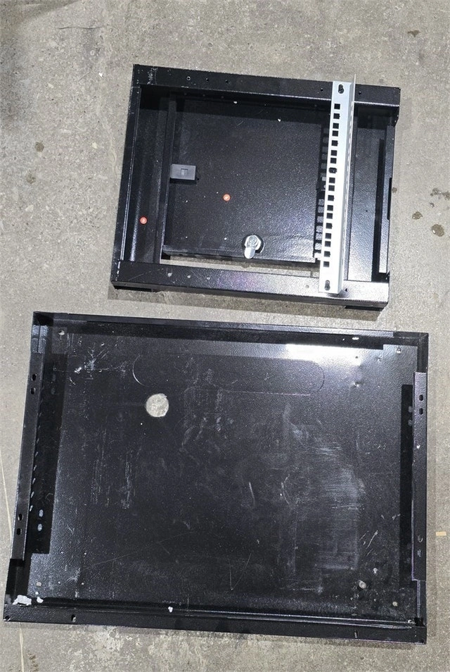 Used and complete in an open box. Pickup is near Kipling and Evans. This space-saving wall mount network cabinet is great for retail, classrooms, back offices, and other areas where space is limited. It features vents for fast heat dissipation, a sturdy welded frame construction with a 100 lbs wall-mount capacity and 200 lbs ground-mount capacity, and a locked glass door for security. The adjustable mounting rails and wiring holes make installation and cable management easy. Condition: Used - Like new. Cash accepted.