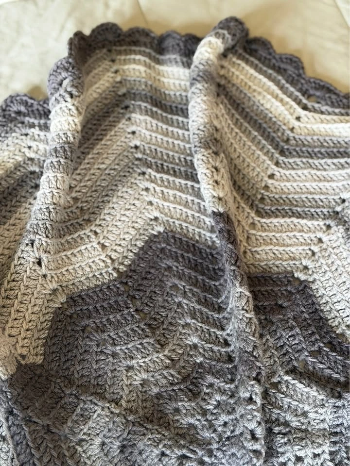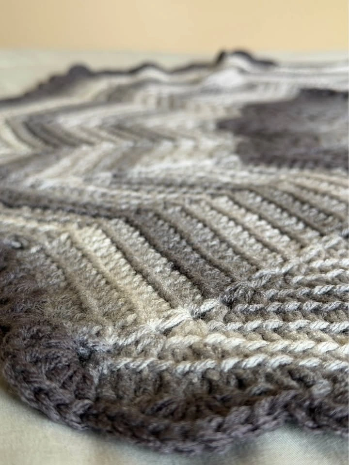 Handmade Round Crochet Baby Blanket | Gray, Taupe & Smoky Mauve