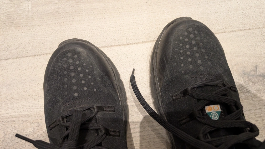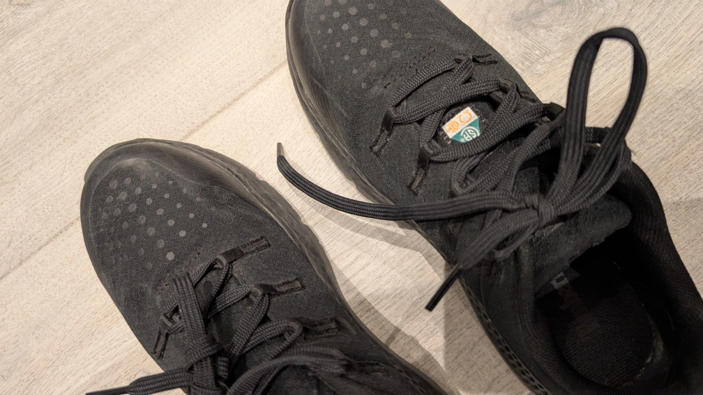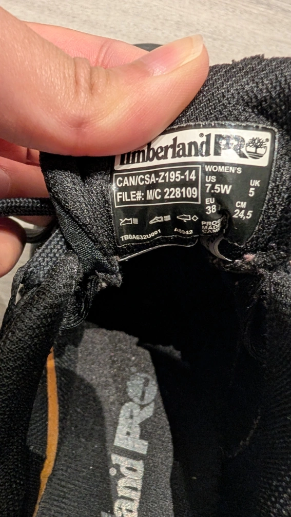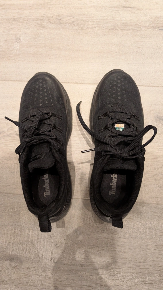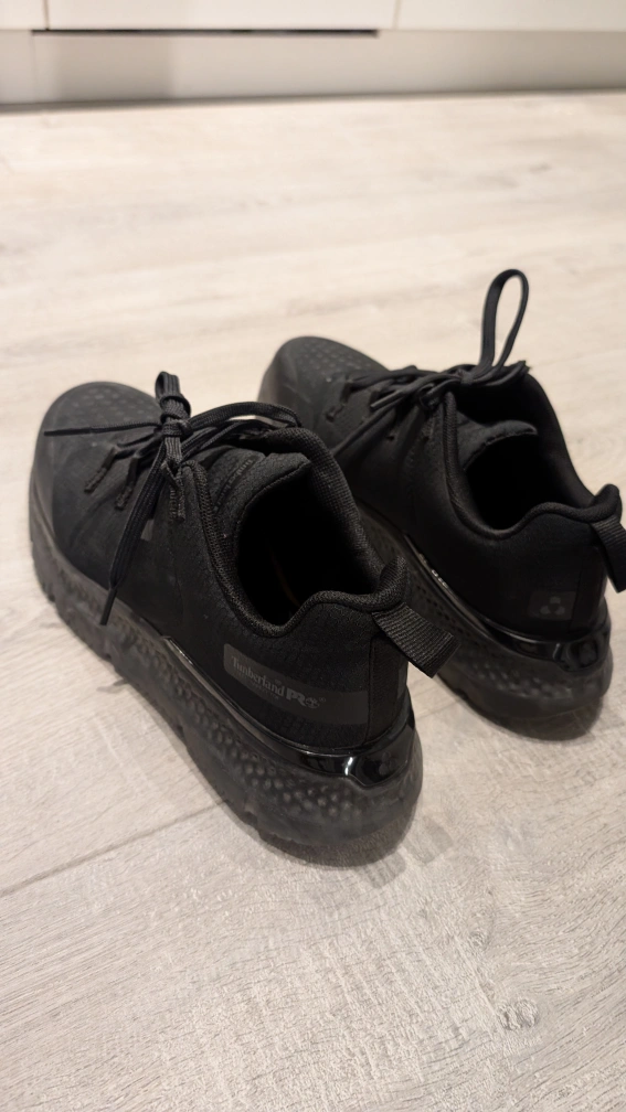 Used for only five months. Selling because I don't need it in my job anymore. Pair of black Timberland PRO sneakers. Lace-up closure. Features a translucent outsole. Good for everyday wear especially in factories/warehouse etc.
