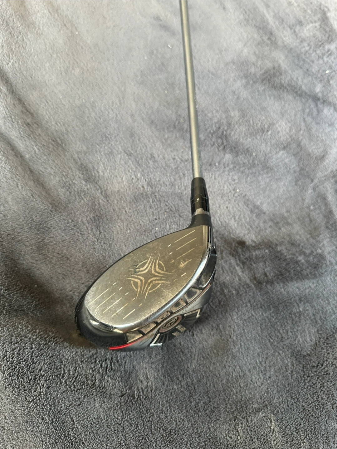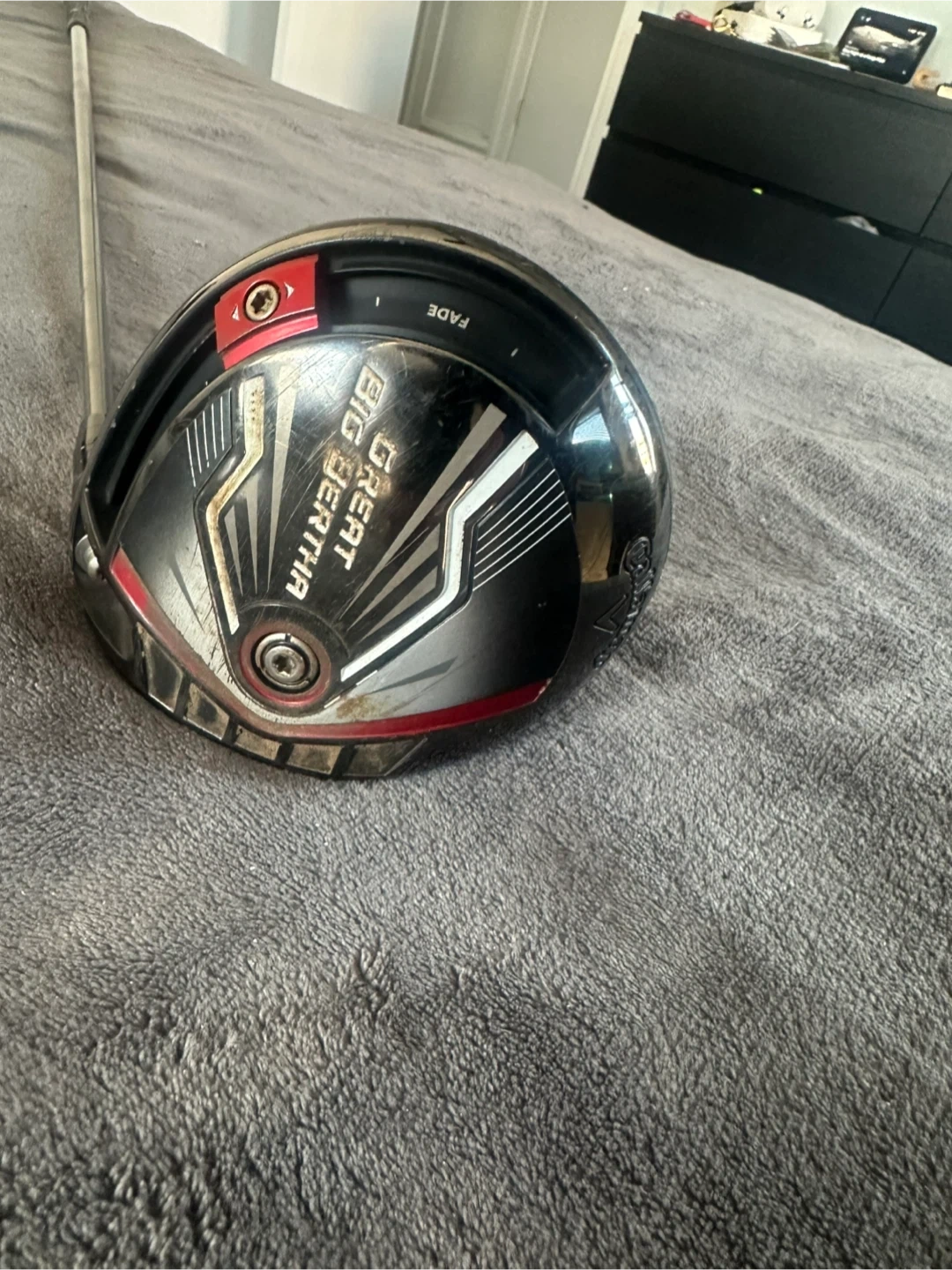 This is a Callaway Big Bertha driver. It features a Mitsubishi Kuro Kage shaft. The club has a flex rating of S.
